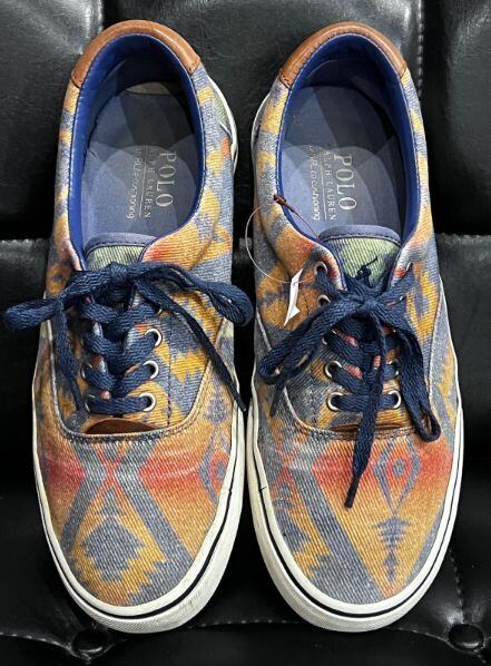 スタンダードなデッキシューズタイプで柄はラルフローレンお得意のネイティブ柄です。