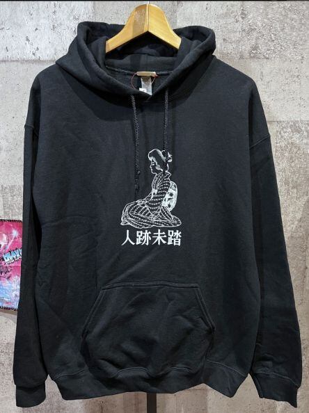 美品 人跡未踏 シュールな芸妓 プルオーバー スウェット パーカー 黒 L メンズ 芸者 舞子