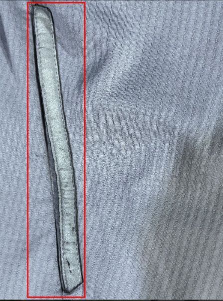 ジャージ生地で裏はワッフル形状になっています。ブルーのセメント柄部分は、ポリエステル地のオーバーレイです