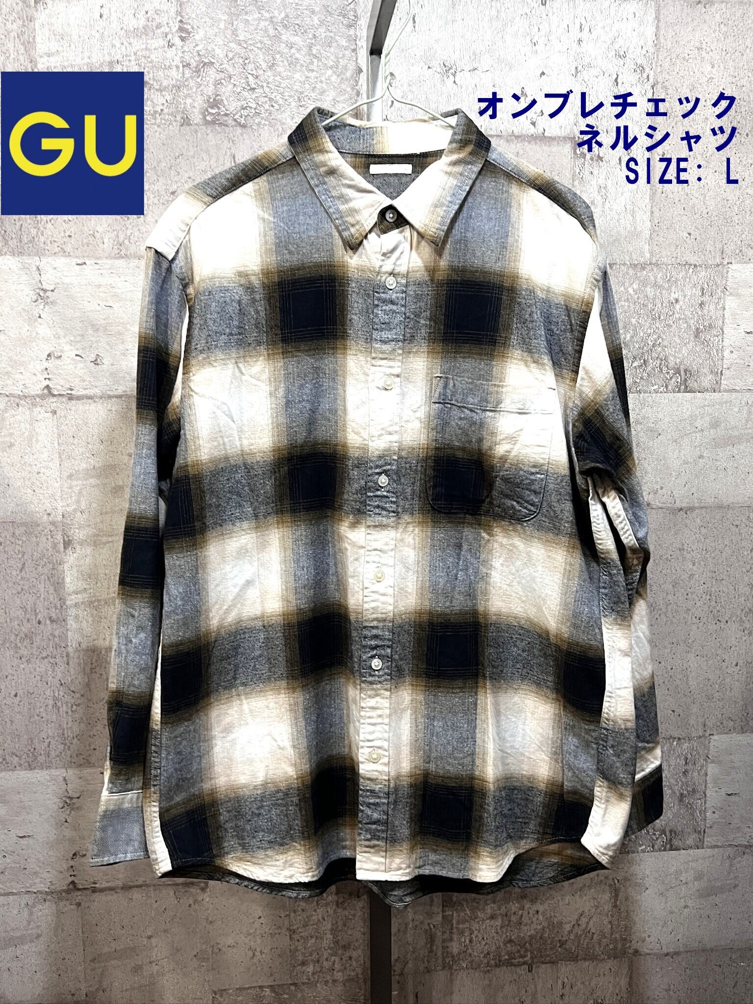 美品 GU オンブレチェック ネルシャツ L ベージュ系 ジーユー