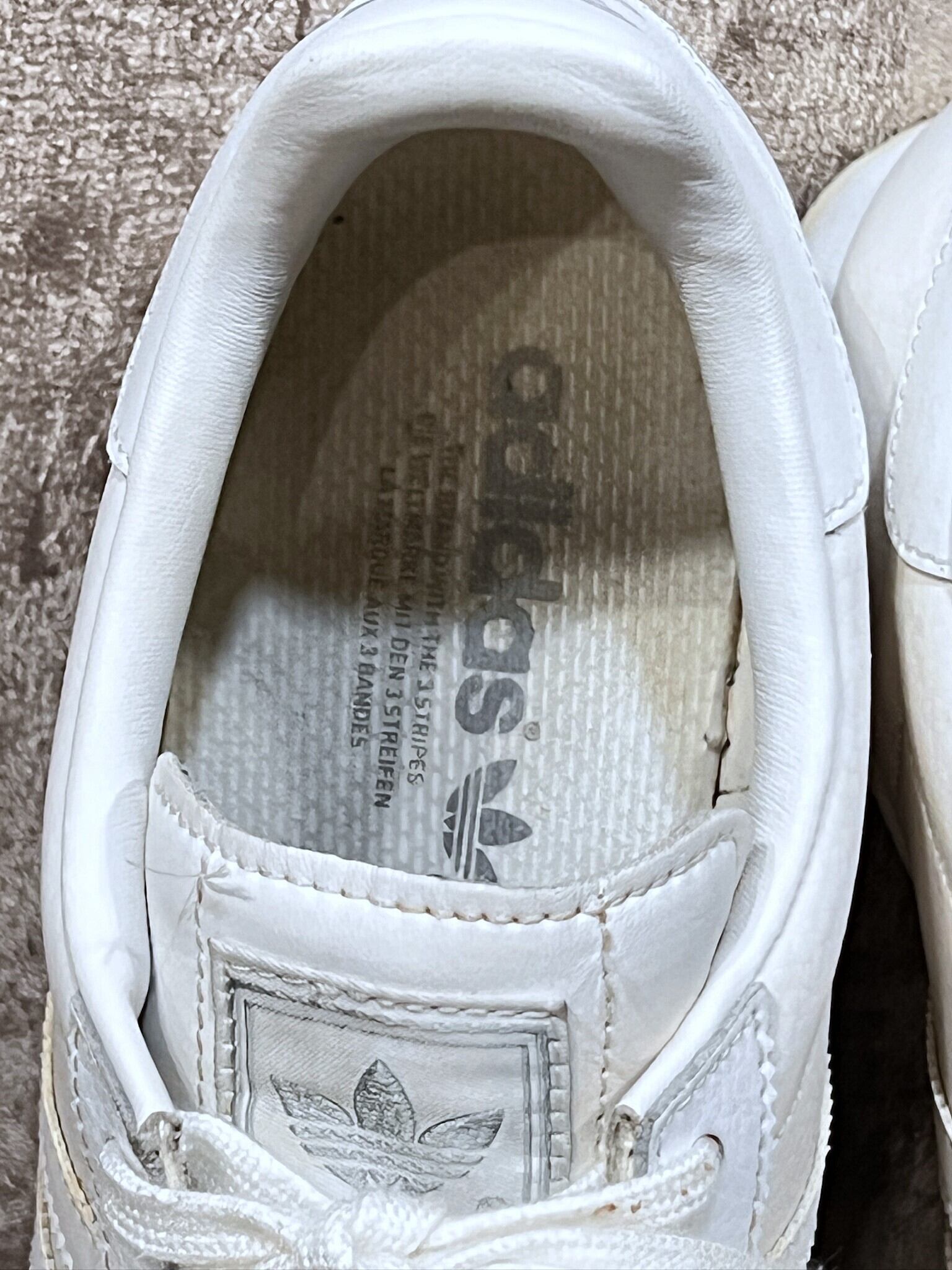 経年による変色なのか、ラインとアッパーの後ろ半分はややオフホワイトぽくなっています