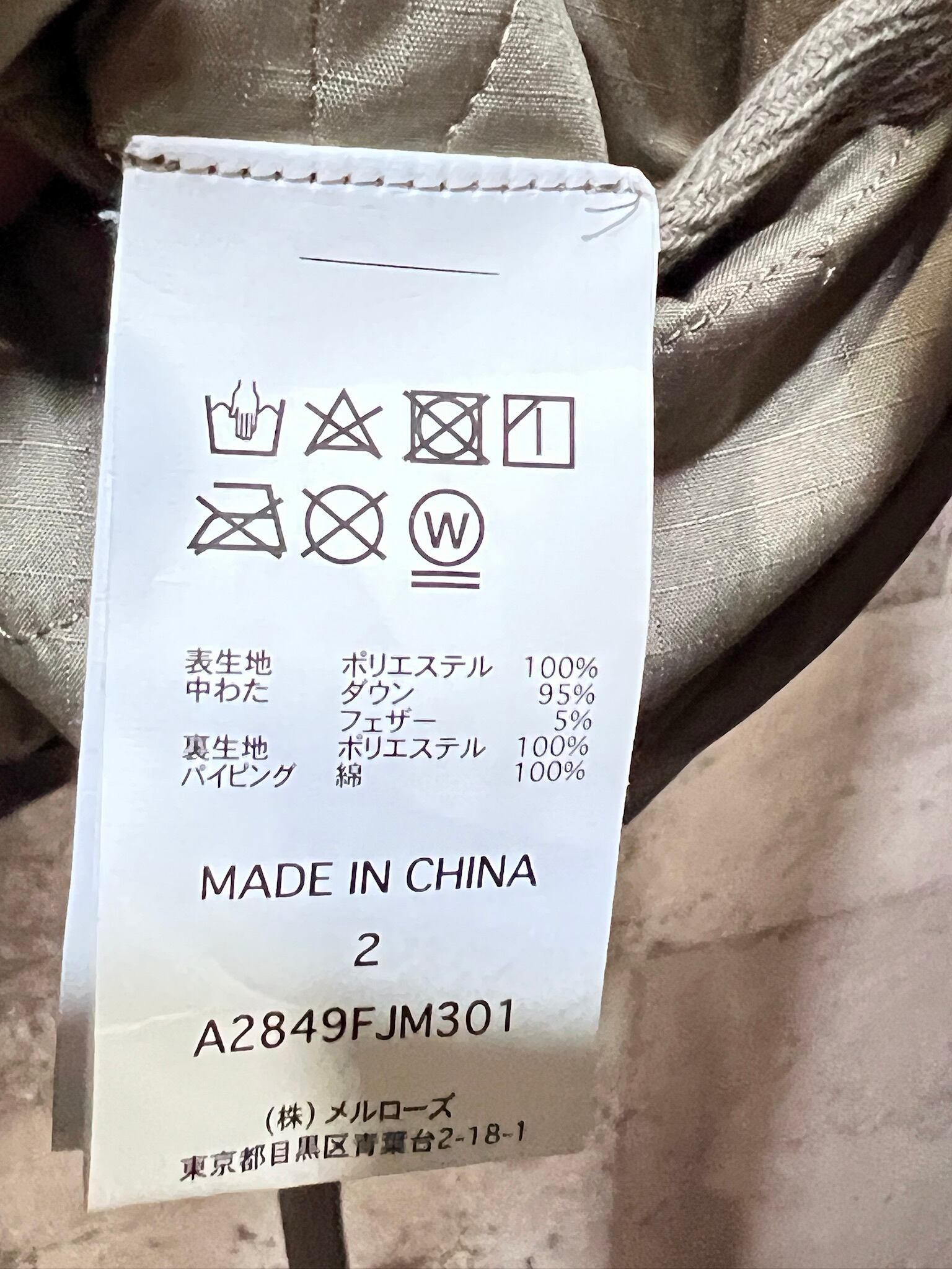 【主な素材】 表地/裏地:ポリエステル 中綿:ダウン95%フェザー5%