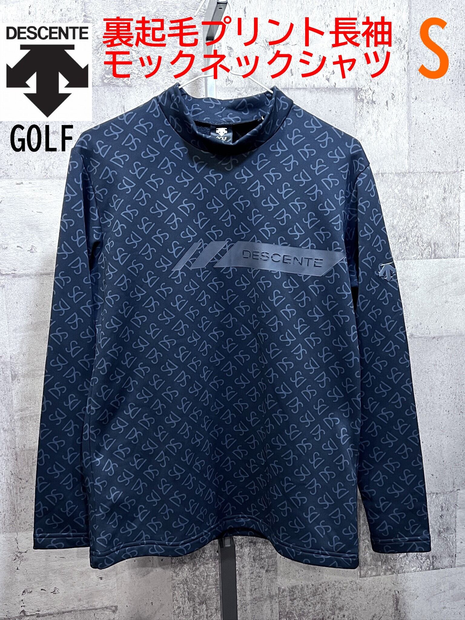 美品 デサント ゴルフ 裏起毛プリント長袖モックネックシャツ S メンズ DGMWJB09 DESCENTE GOLF 冬用 モックネックシャツ