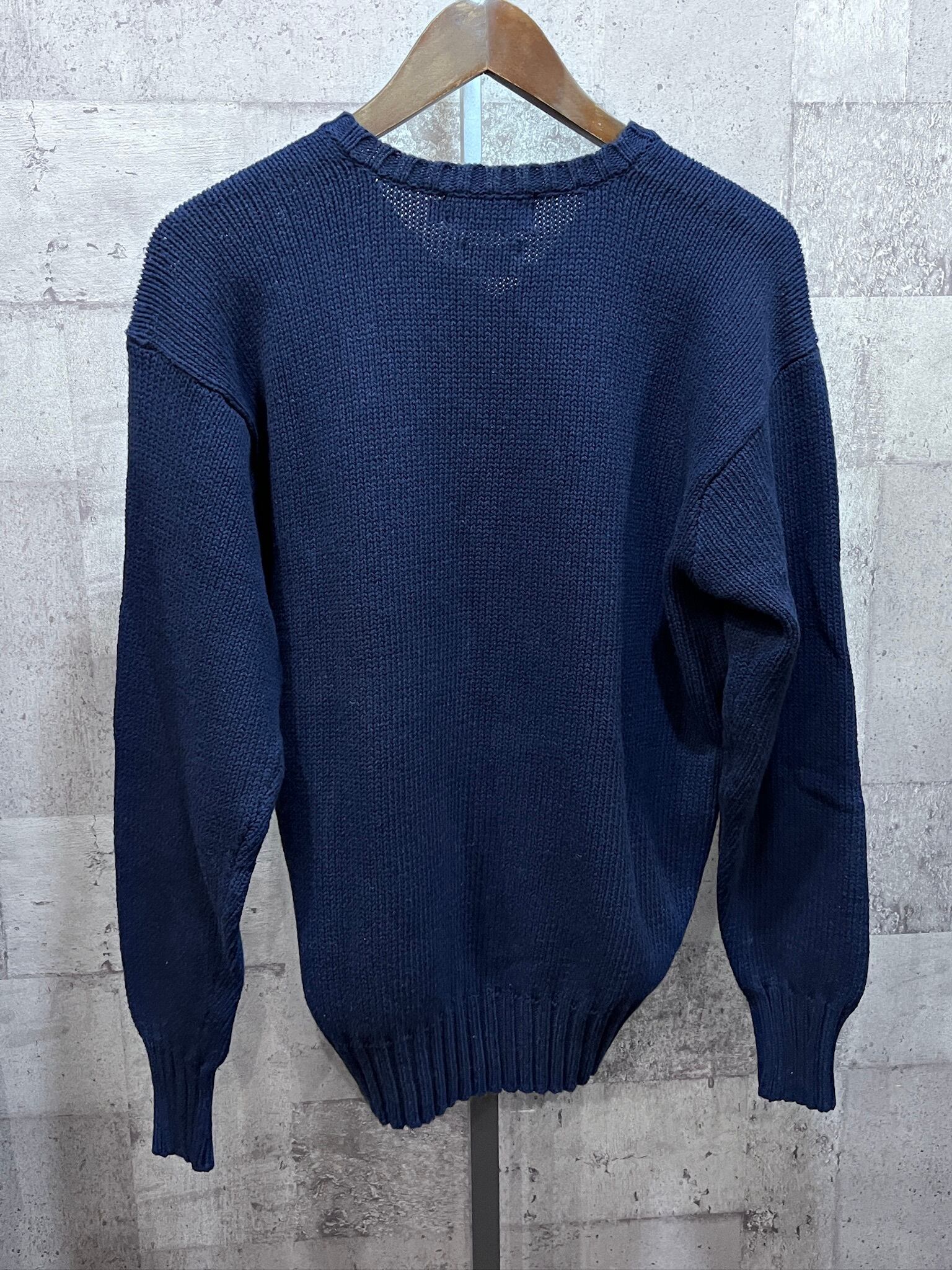 未使用 90'S ポロラルフローレン コットン Vネック ローゲージ セーター ネイビー L メンズ POLO RALPH LAUREN ポニー ワンポイント ニット
