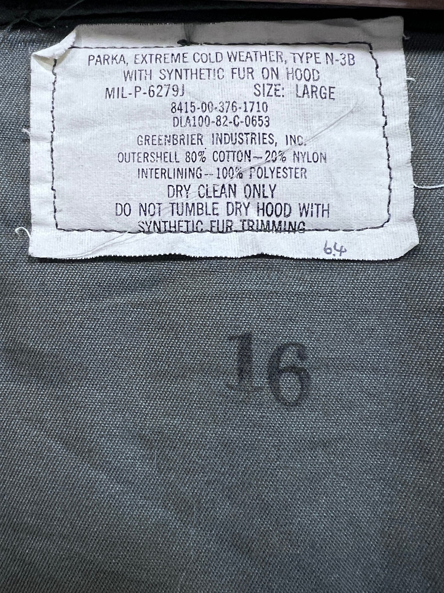 82年 実物 米空軍 USAF N-3B MIL-P-6279J ミリタリー ヴィンテージ U.S.AIR FORCE N3B 80'S