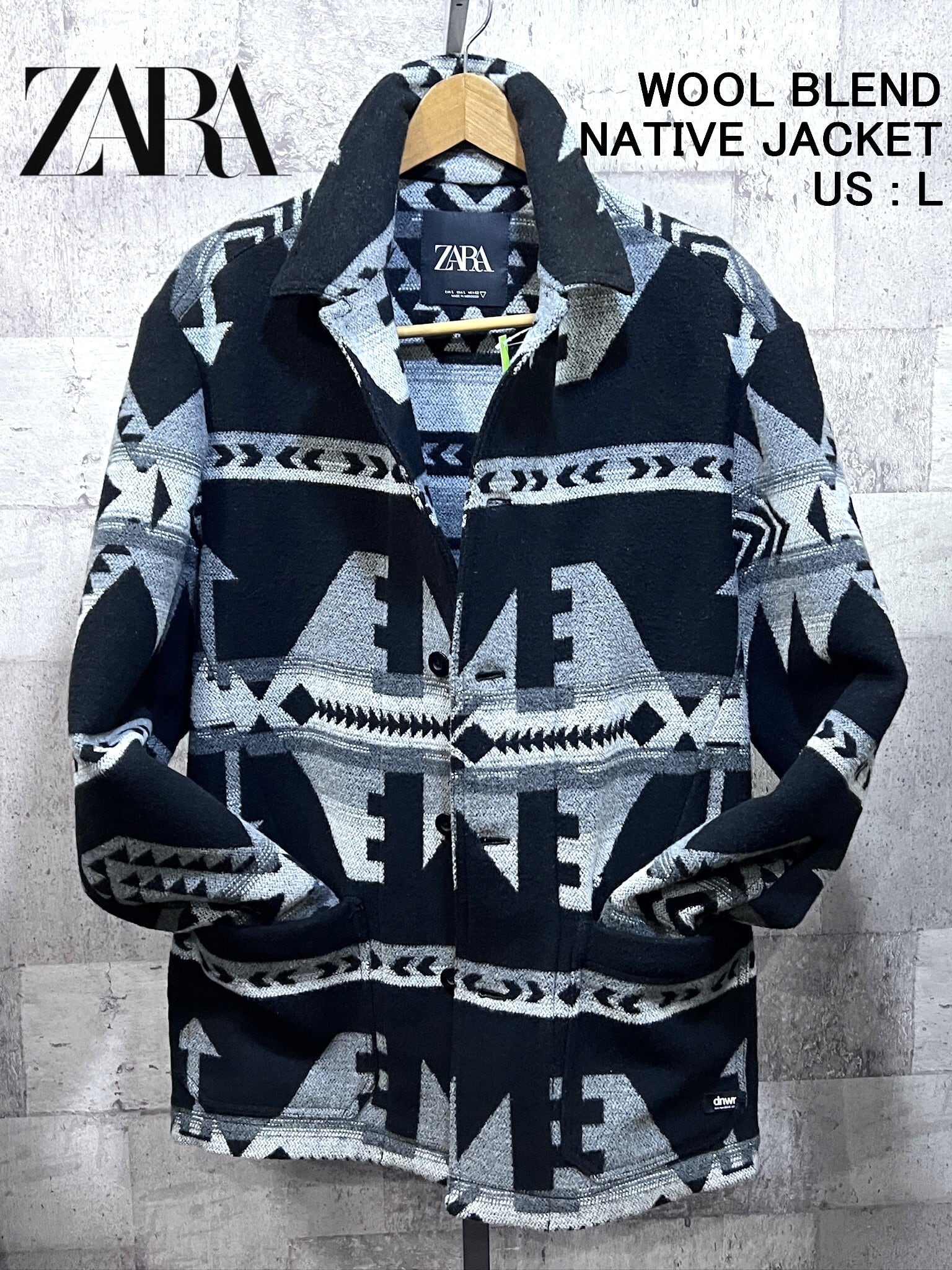 極美品 ZARA dnwr ネイティブ柄 ウールブレンド ジャケット L メンズ ザラ チマヨ