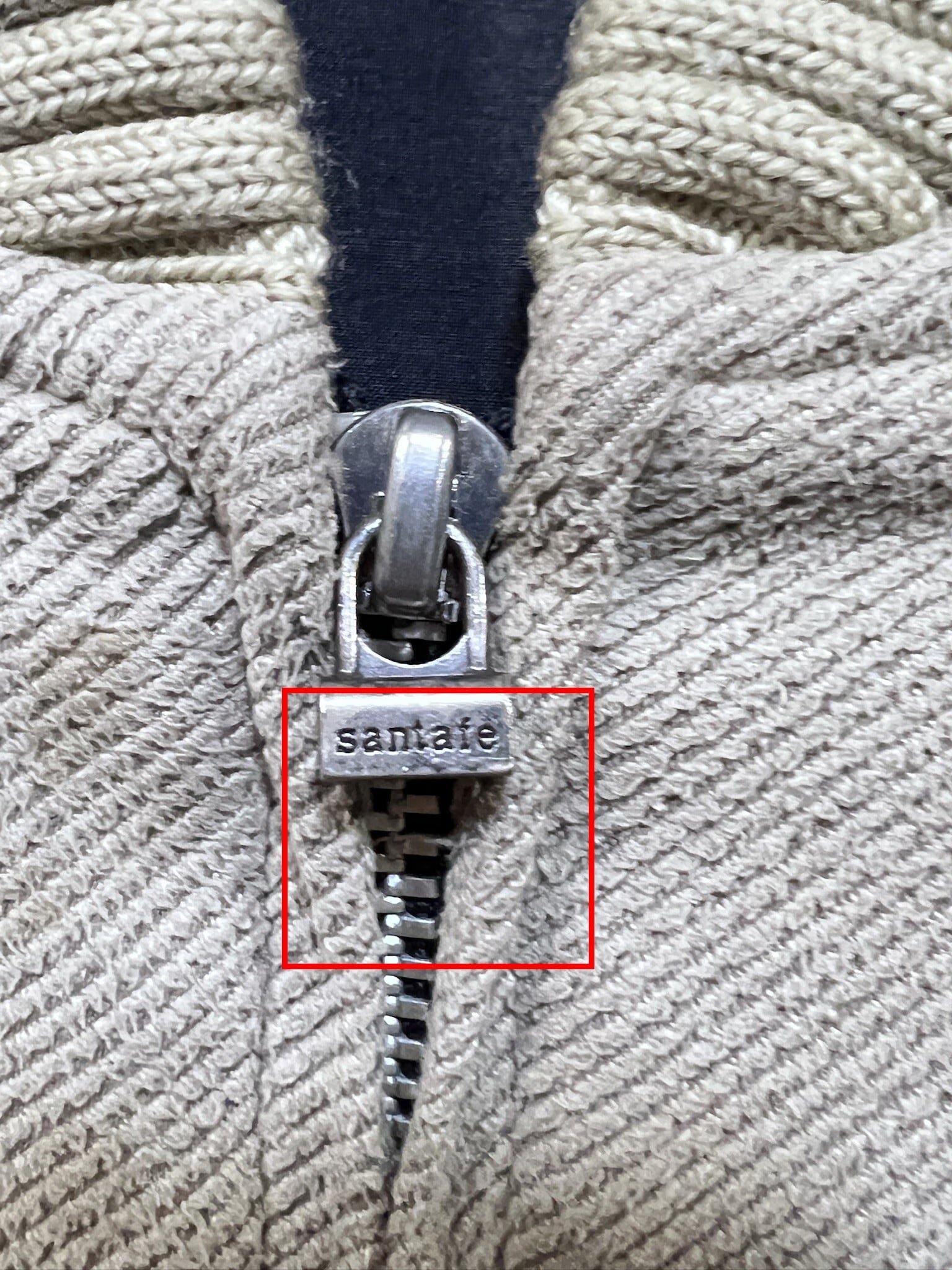 フロントジッパーのスライダーの持ち手におそらくプラスチック系のパーツが付いていたと思われますが、取れて無くなっています。