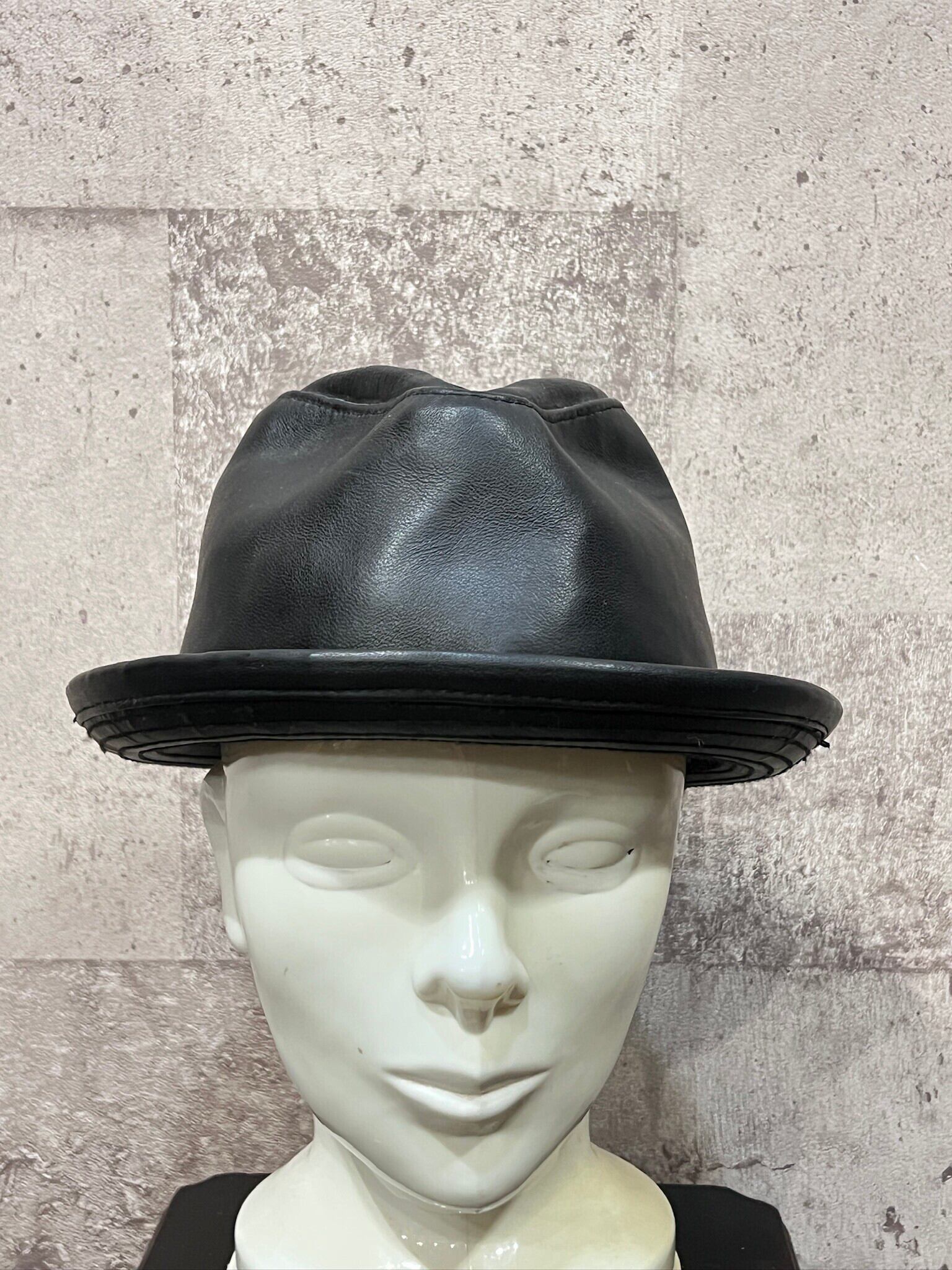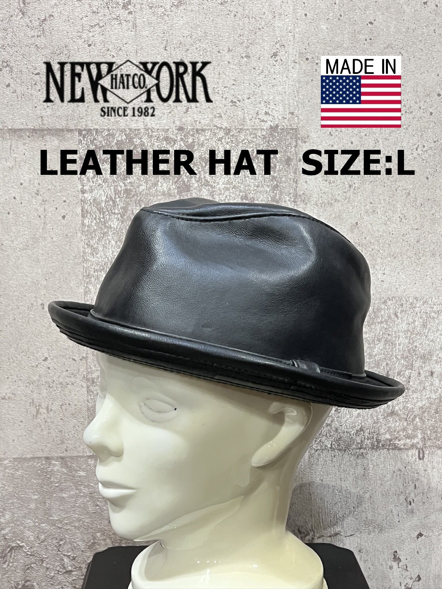USA製 ニューヨークハット ラムスキン フェドラ 中折れ レザーハット ブラック L 黒 NEWYORK HAT 米国製
