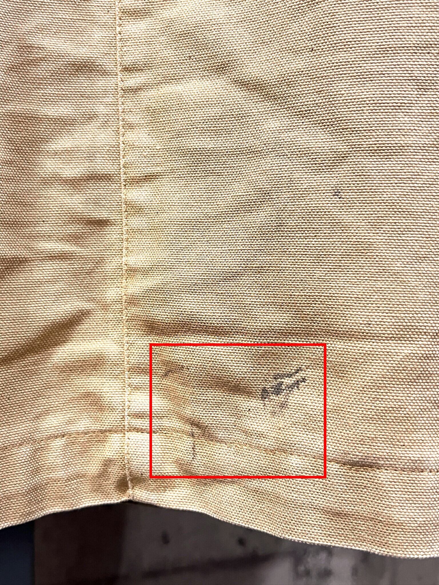 背面裾中央に少し汚れ、右袖薄い汚れ、その他使用感ございますが、汚い感じではありません。
