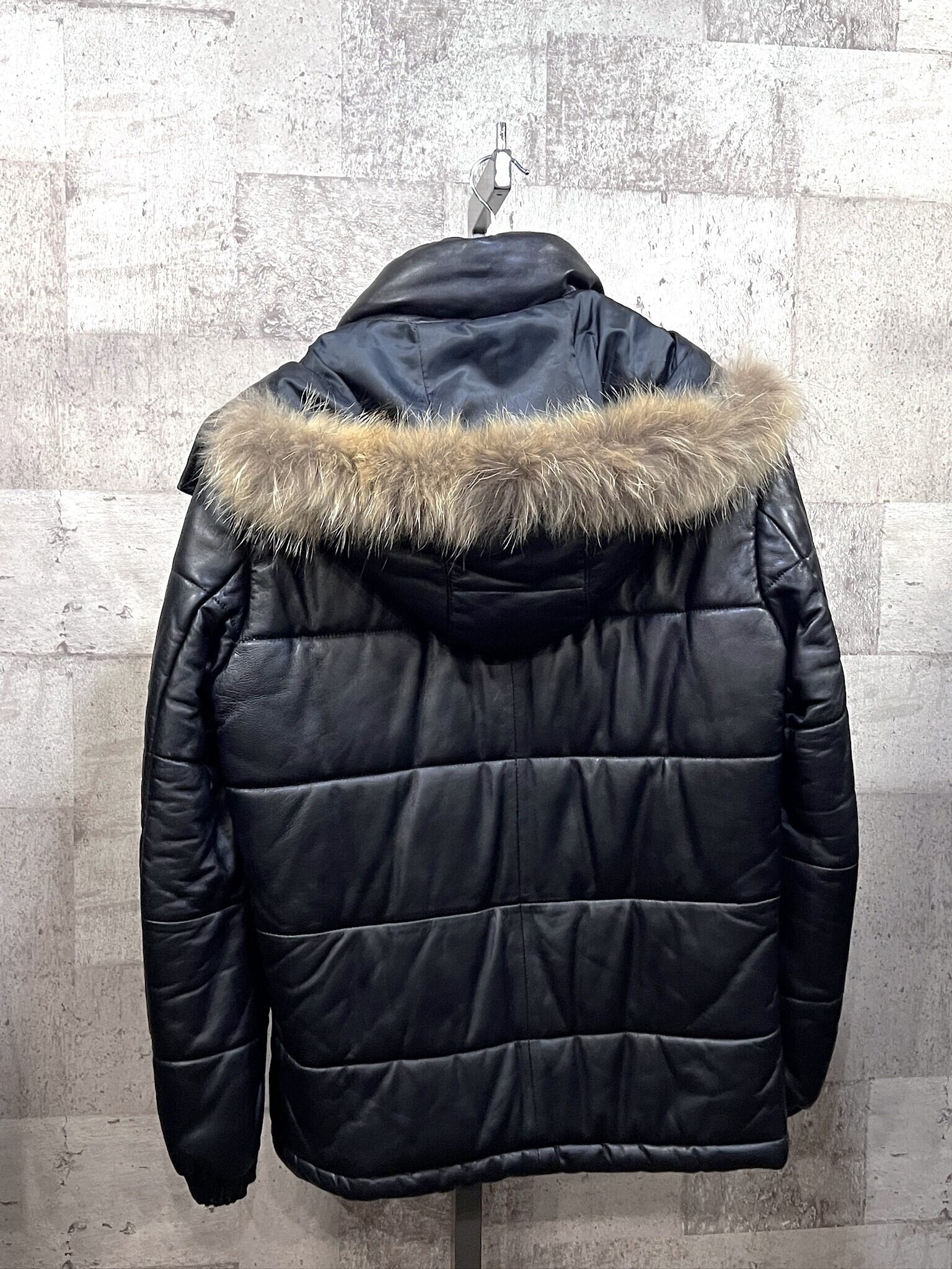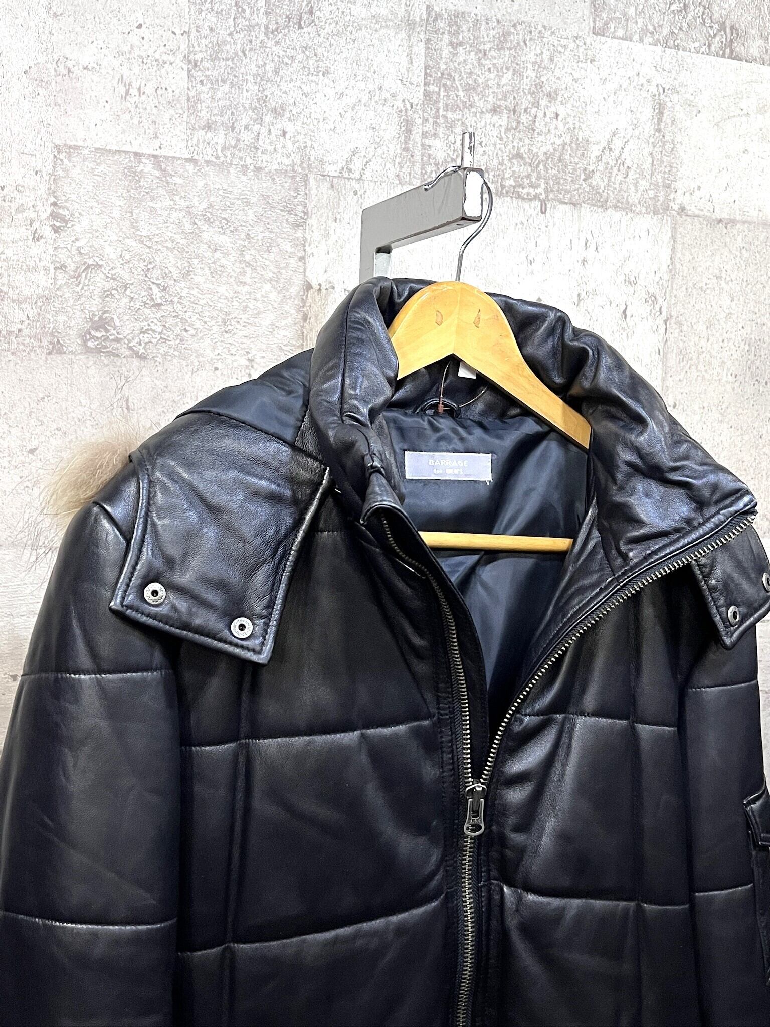 美品 BARRAGE for men 3WAY 羊革 レザー中綿ジャケット M ラムレザー ミツミネ レザーダウン リアルファー バラージュ