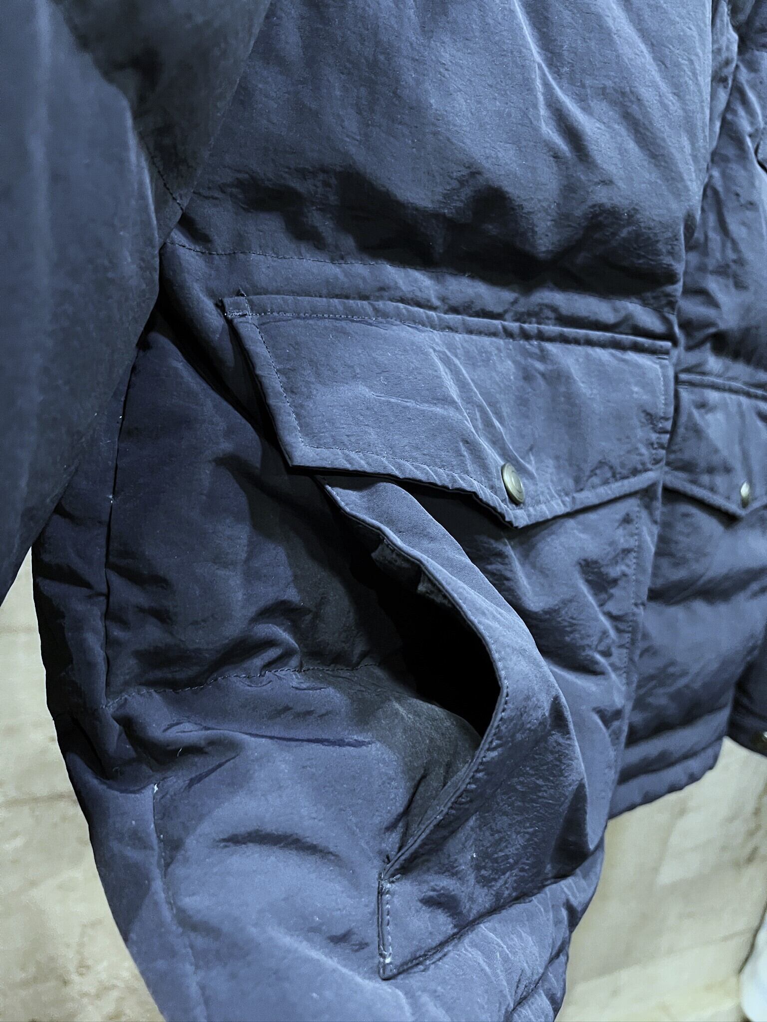 襟はダウン入っていないのか少ないのか解りませんが、調べたところ元からのようです。