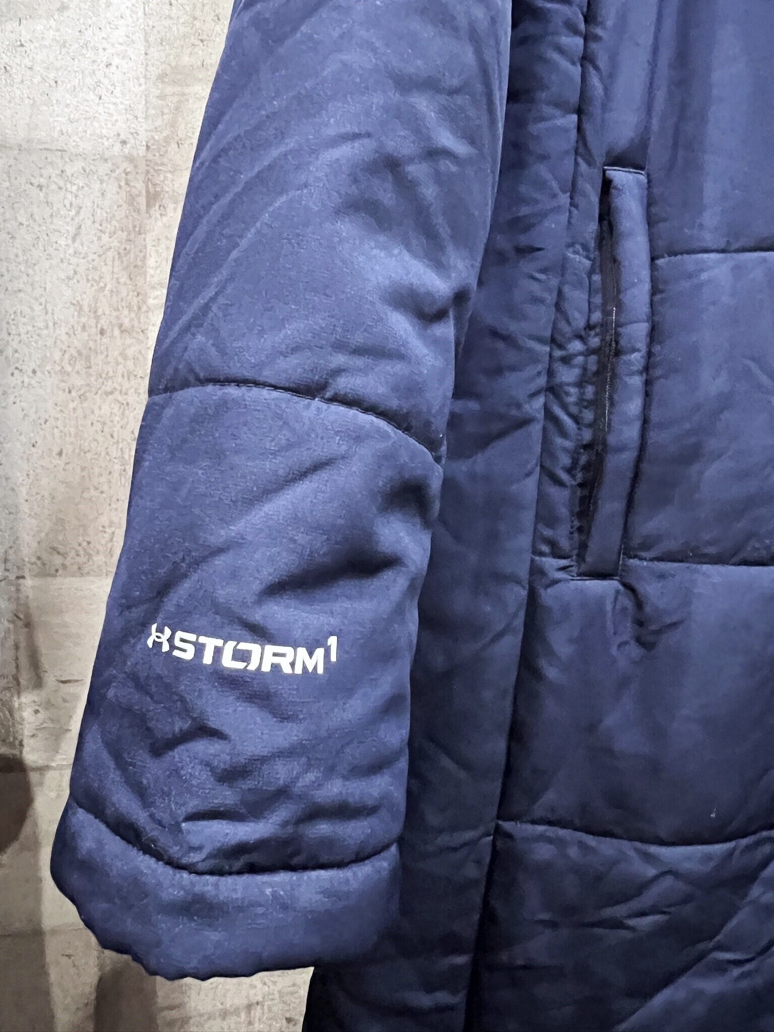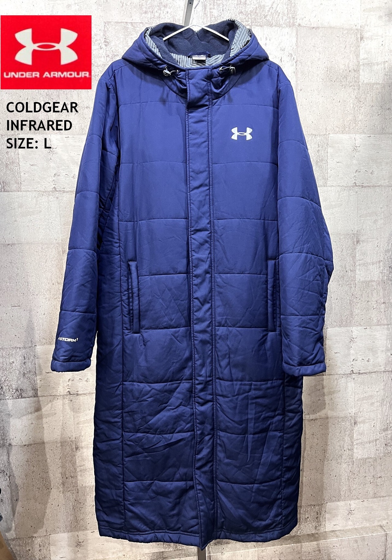 美品 アンダーアーマー コールドギア INFRARED STORM1 中綿 ベンチコート L メンズ ネイビー UNDER ARMOUR
