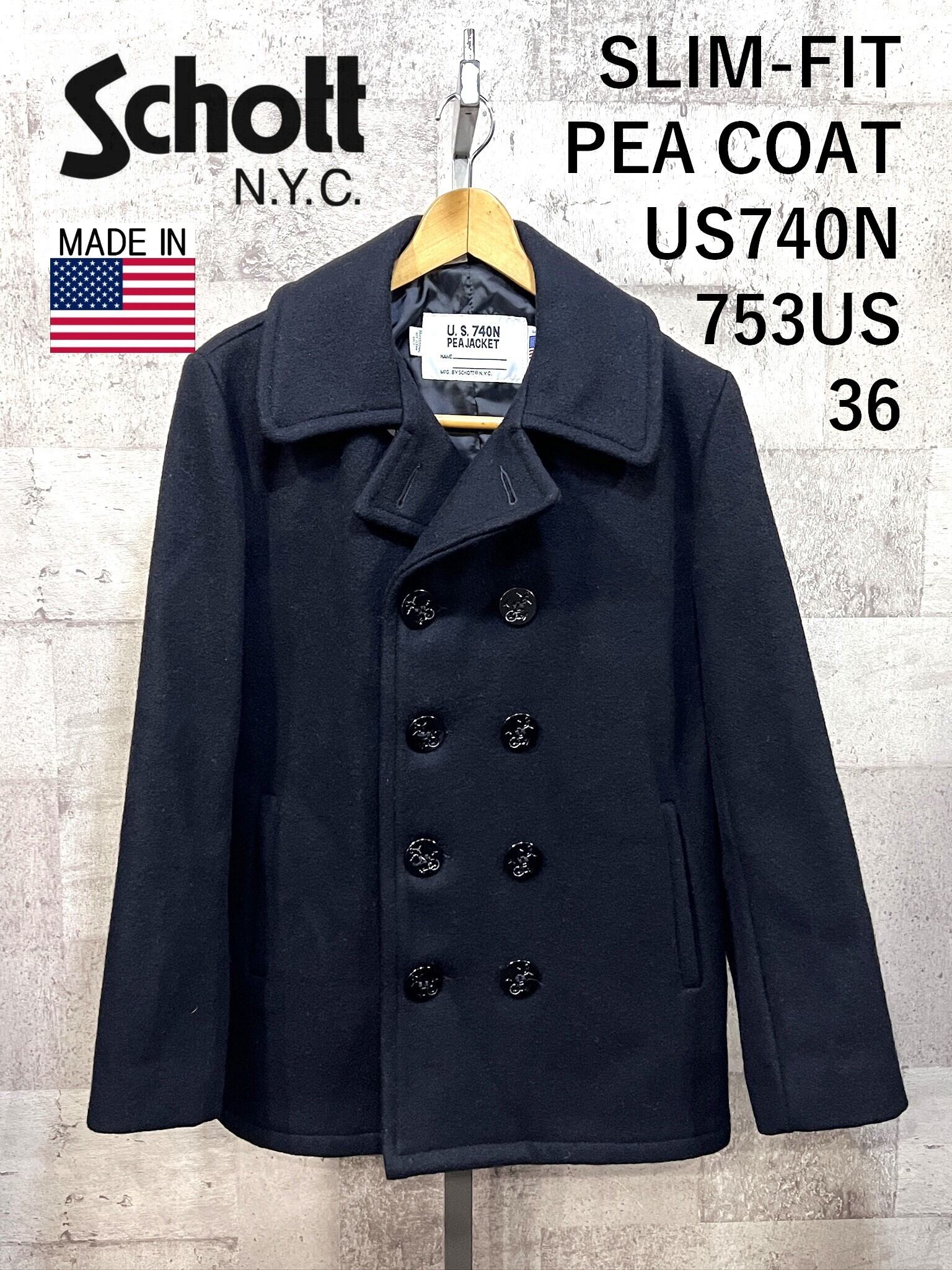 USA製 schott 740N スリムフィット ピーコート 753US ブラック 36 ショット 7118