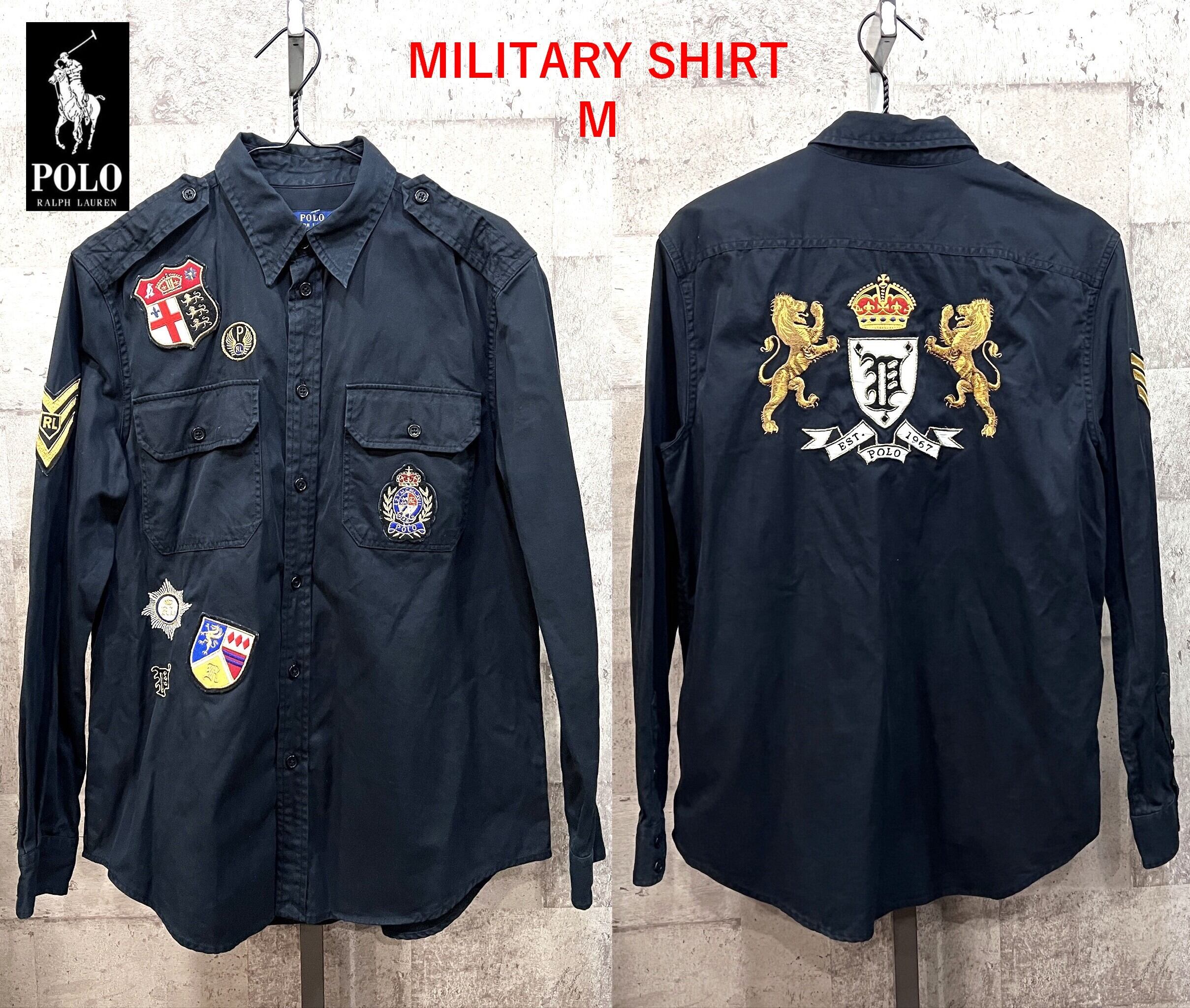 ポロラルフローレン 正規品 ワッペン 刺繍 ミリタリークレストツイルシャツ M POLO RALPH LAUREN