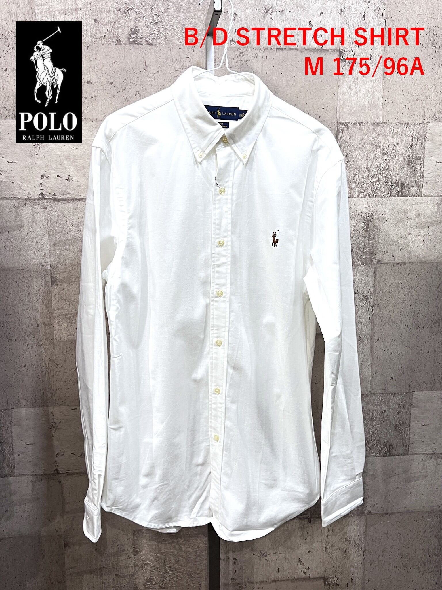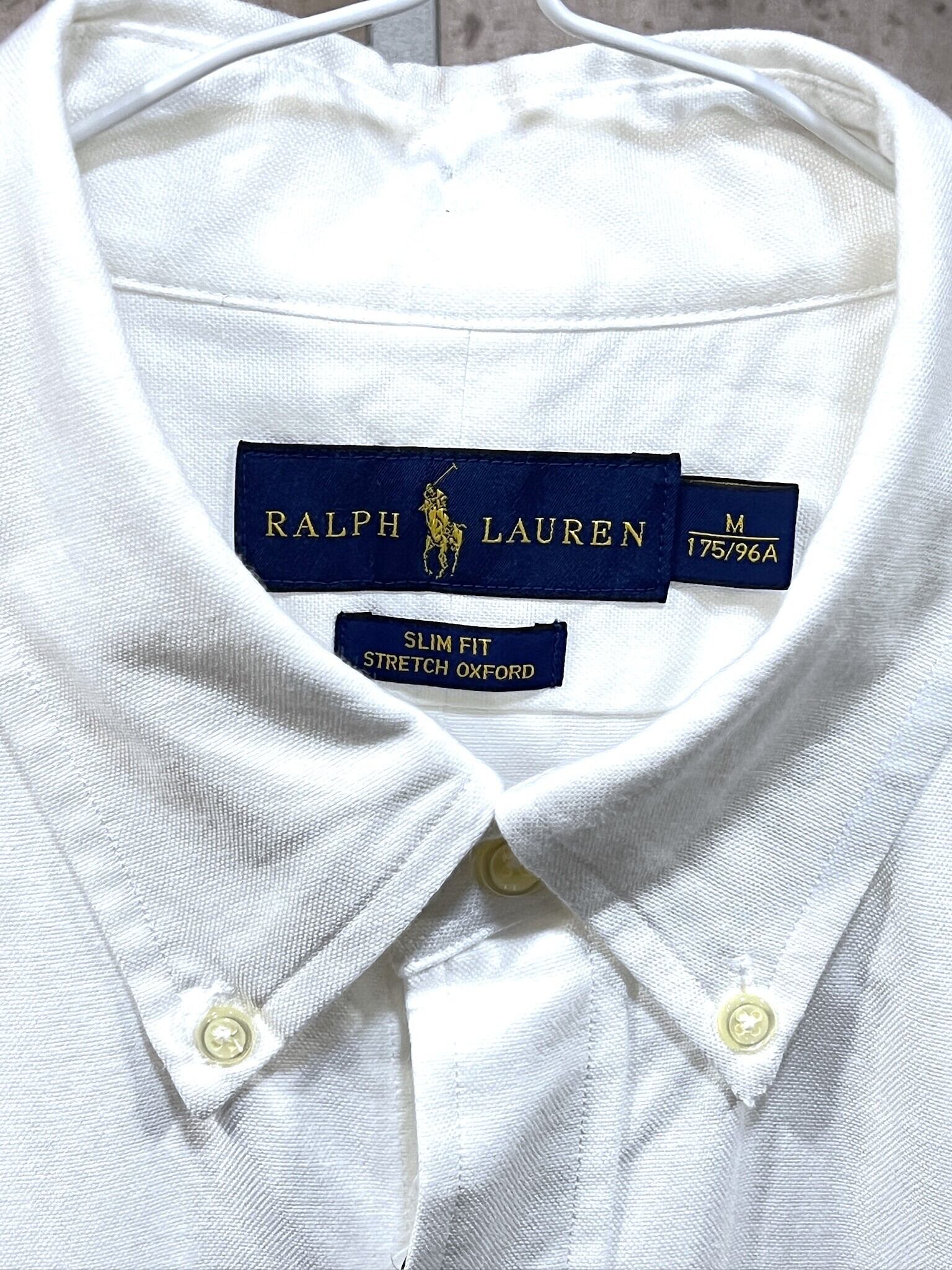 美品 ラルフローレン 正規品 長袖 ストレッチ オックスフォード ボタンダウンシャツ ホワイト M メンズ 白 ポロ POLO RALPHLAUREN