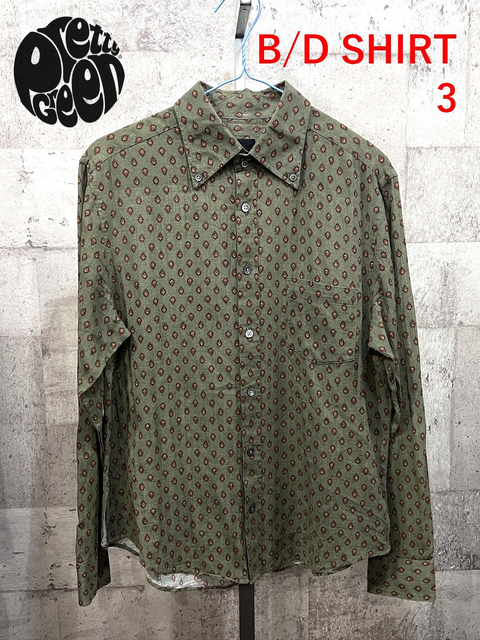 プリティグリーン 小紋柄 長袖ボタンダウンシャツ 3 Pretty Green オアシス リアムギャラガー 幾何学模様 総柄