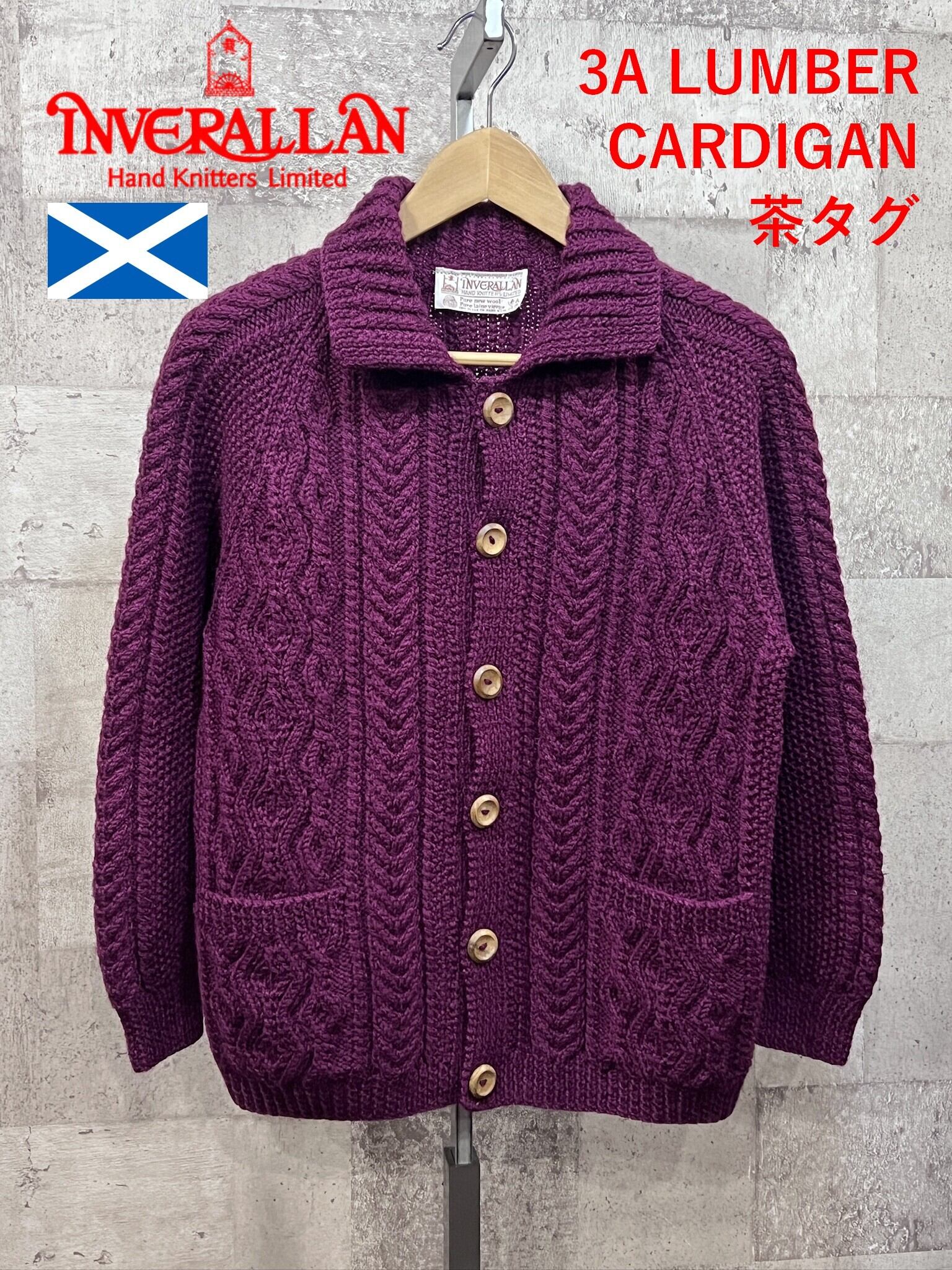 美品 茶タグ スコットランド製 インバーアラン A3 ランバーカーディガン パープル INVERALLAN
