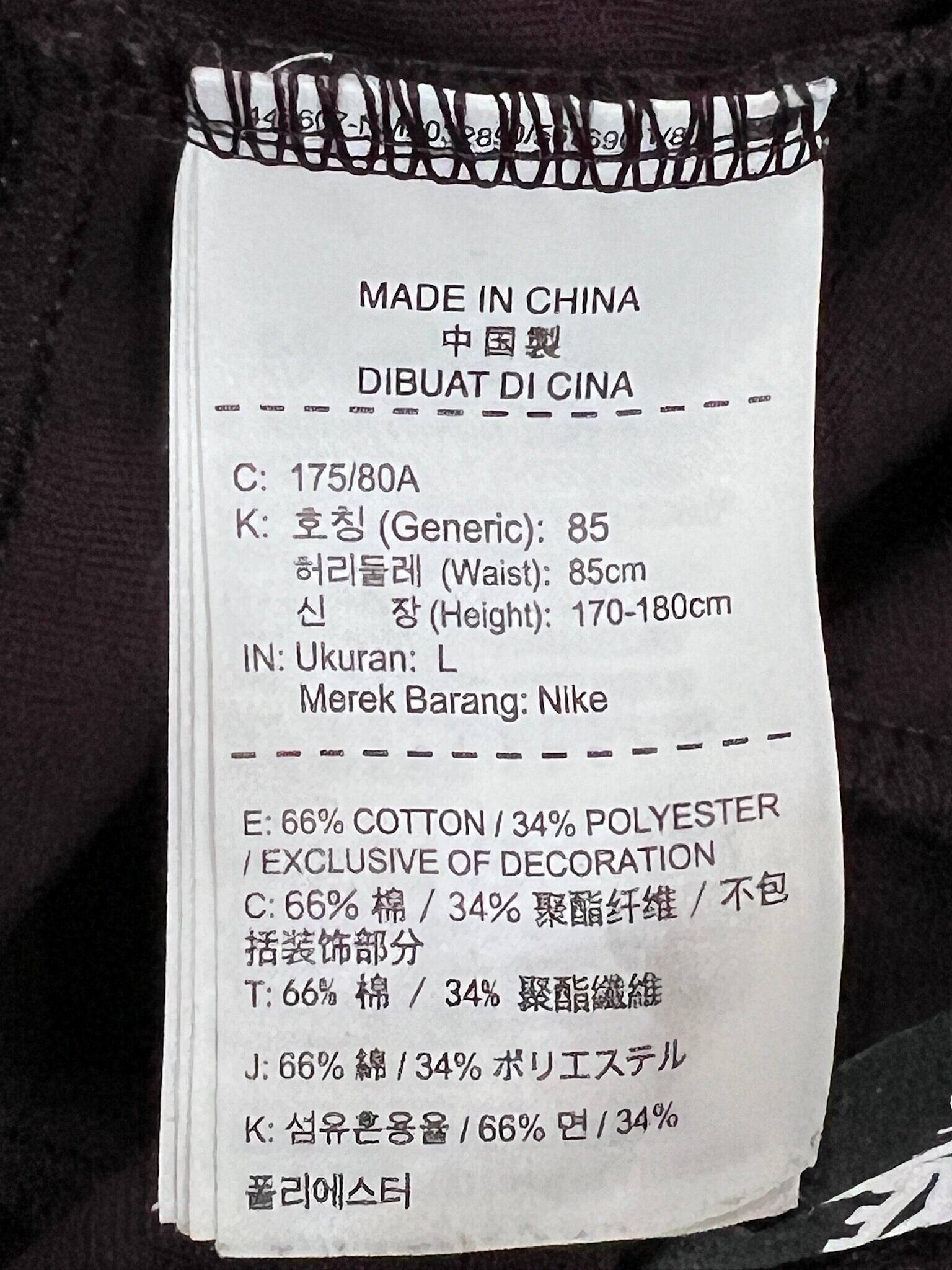 【表記サイズ】 (L) 170-180/W85