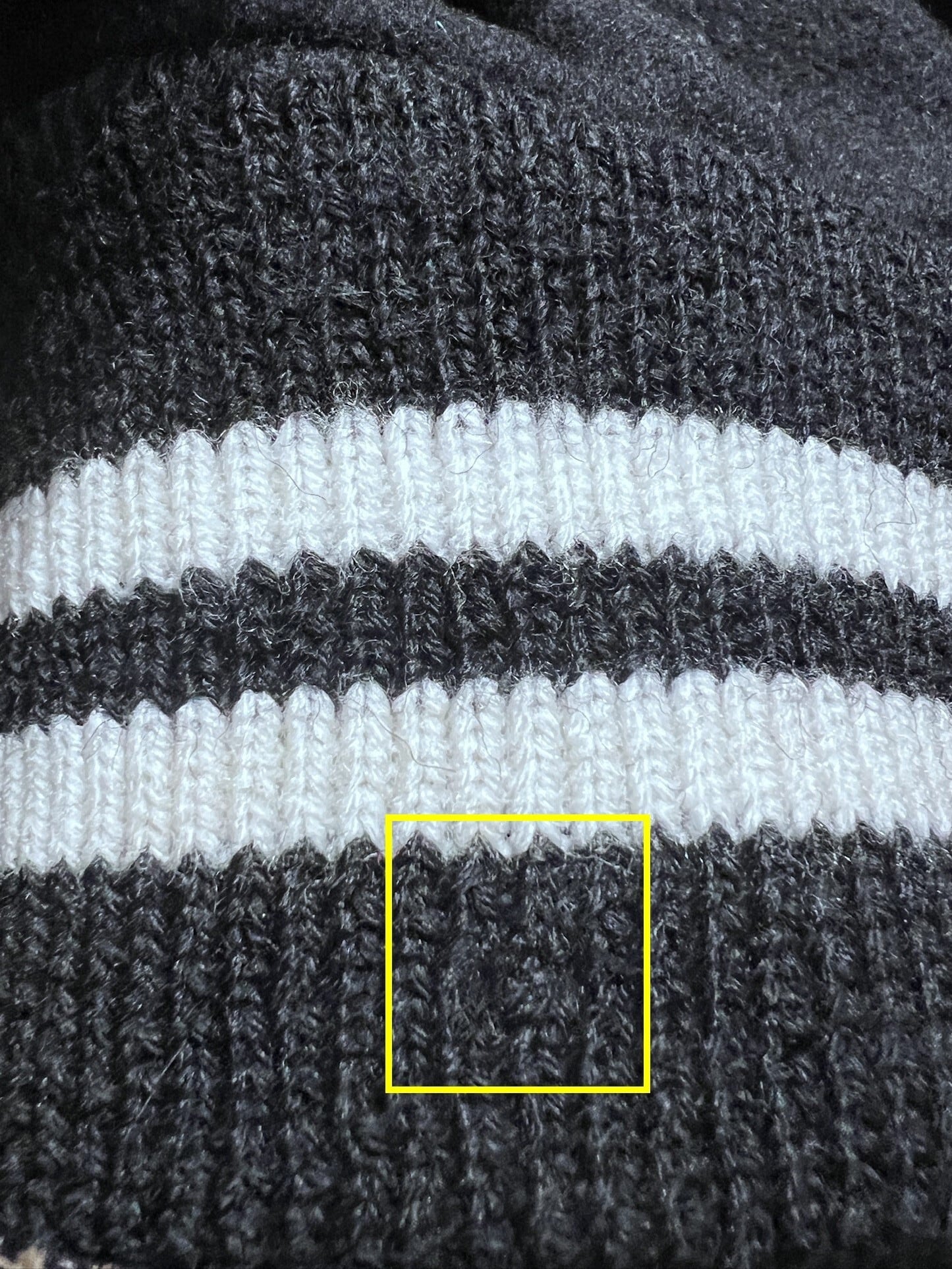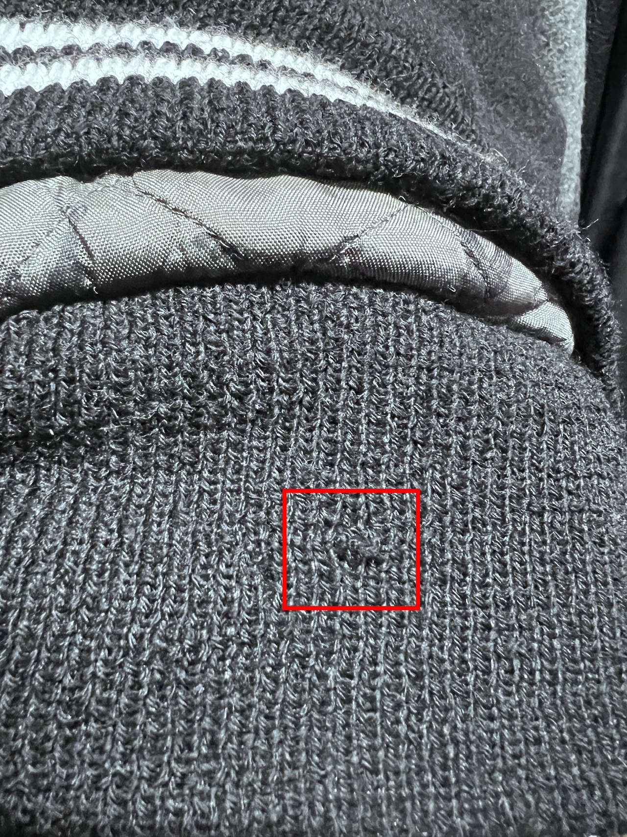裾リブ表1ヶ所、裏1ヶ所ほど小さなホツレを糸で目立たないよう補修してあります。