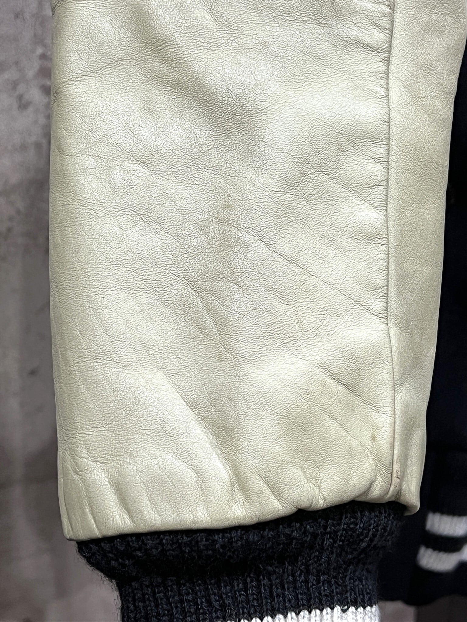裏地に変色あり、袖革にやや擦れや汚れの使用感はございますが、特に目立ったダメージや汚れはありません。