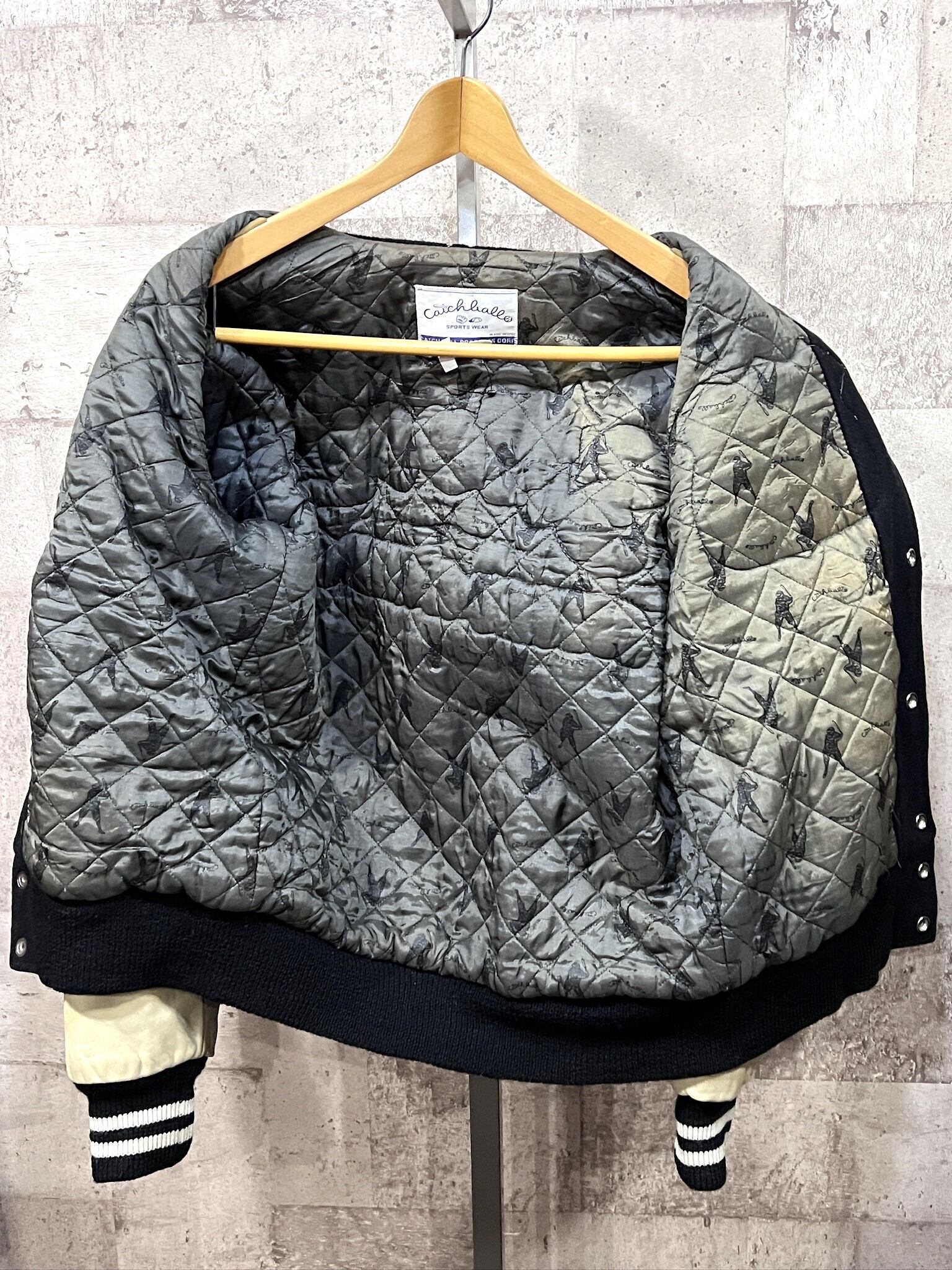 USA製 キャッチボール フルデコ スタジアムジャンパー 黒 36 バックドロップ ブラック スタジャン 米国製 Catchball アワードジャケット
