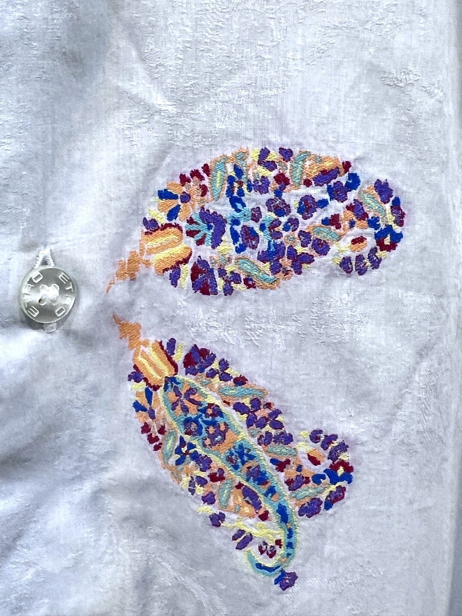 カラフルなペイズリーの刺繍に、生地自体もペイズリーのジャガードになっています。
