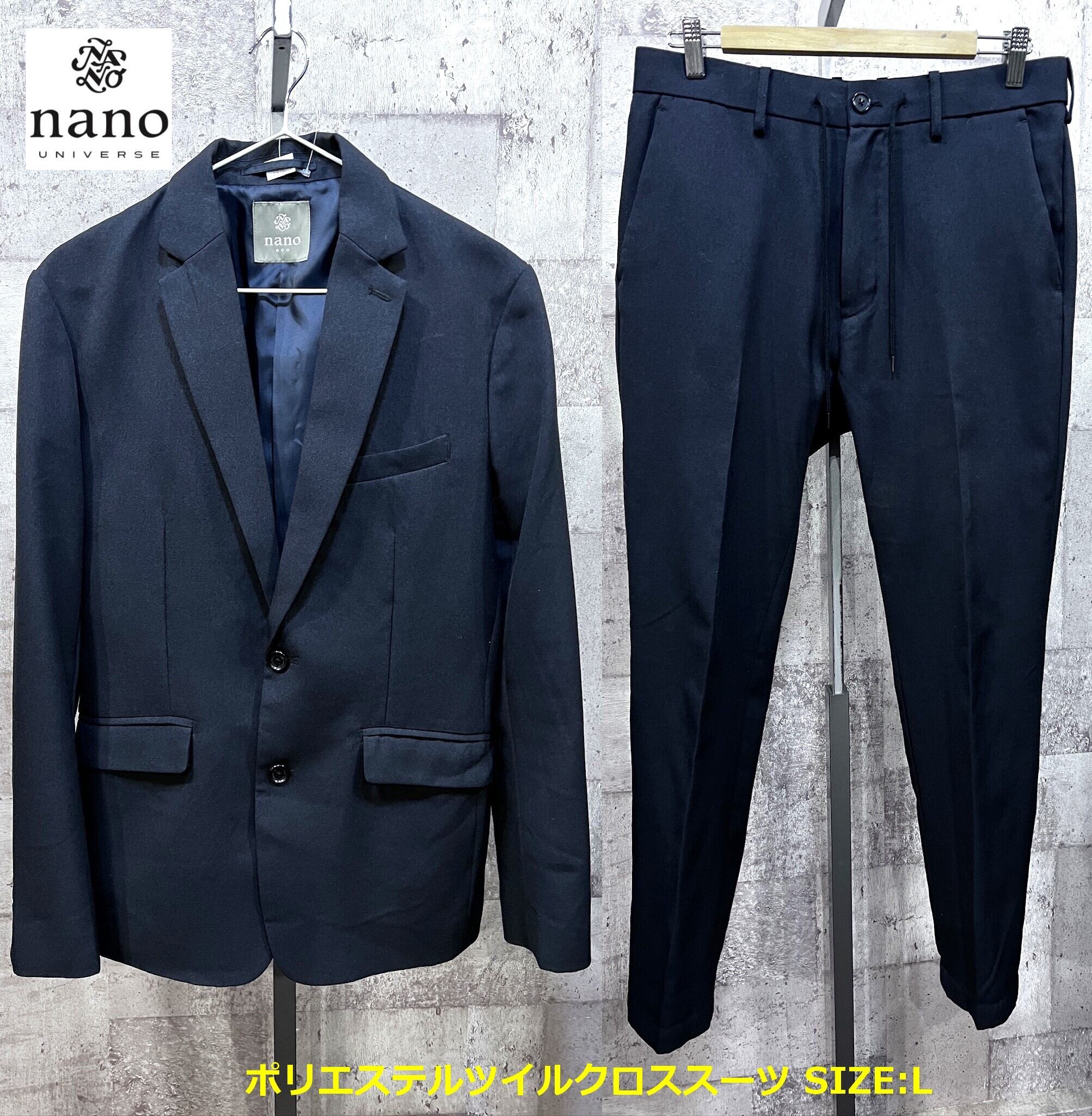 ナノユニバース ポリエステルツイルクロススーツ L ネイビー NANO&CO 上下セットアップ