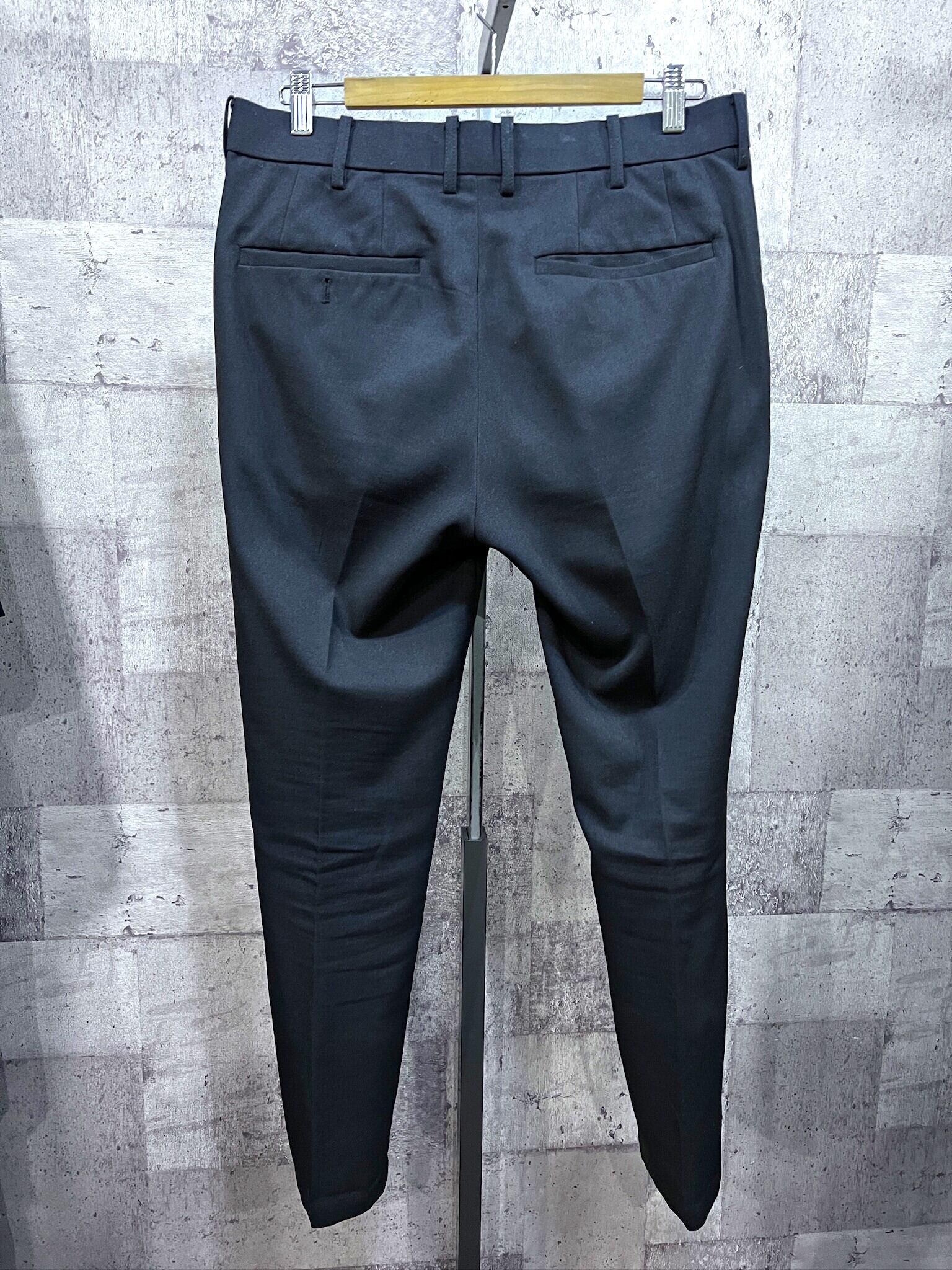 パンツ:ノータック、裾シングル、ウエストに紐、テーパードシルエット