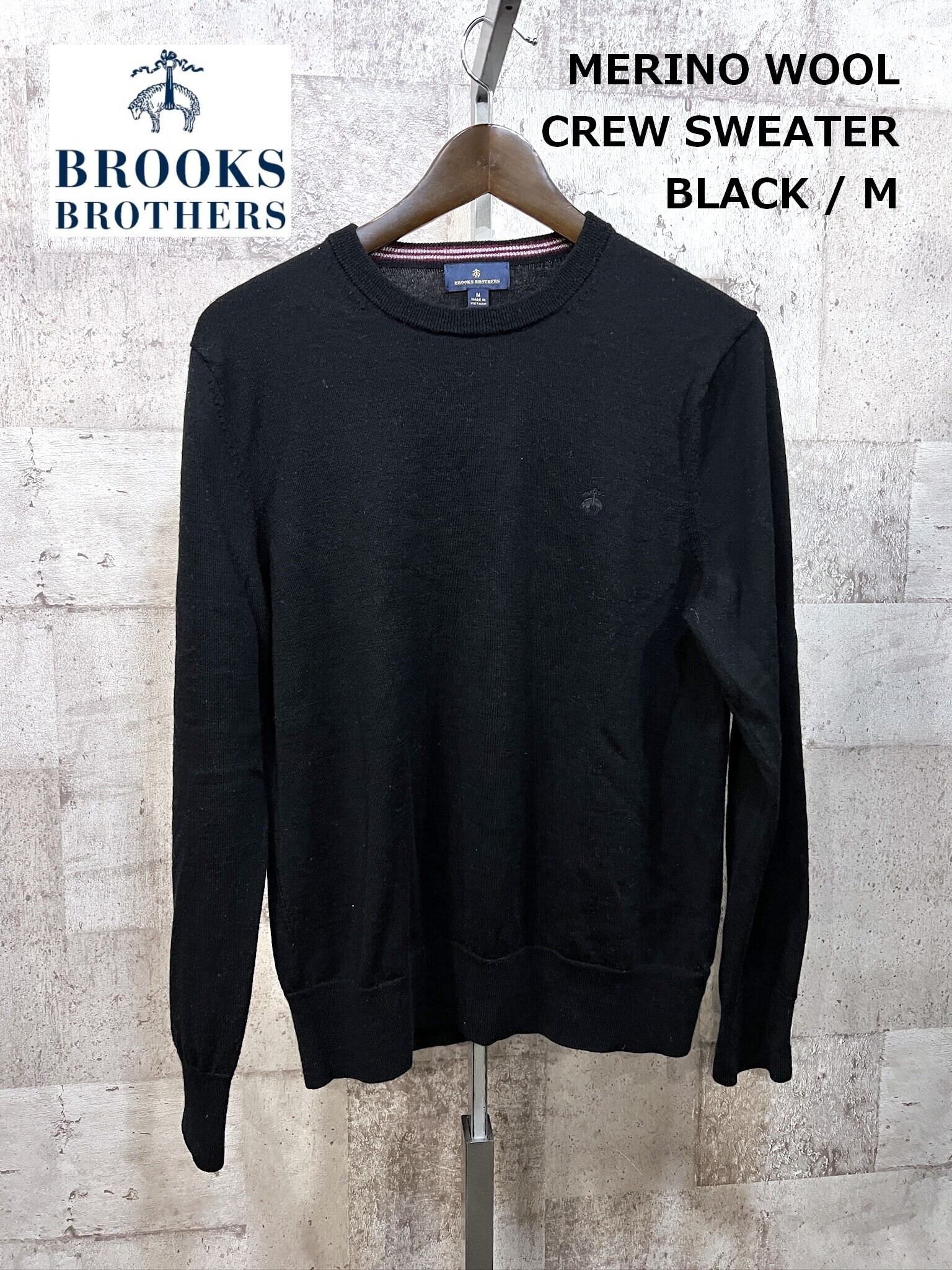 ブルックスブラザーズ メリノウール クルーセーター M ブラック BROOKS BROTHERS ワンポイント