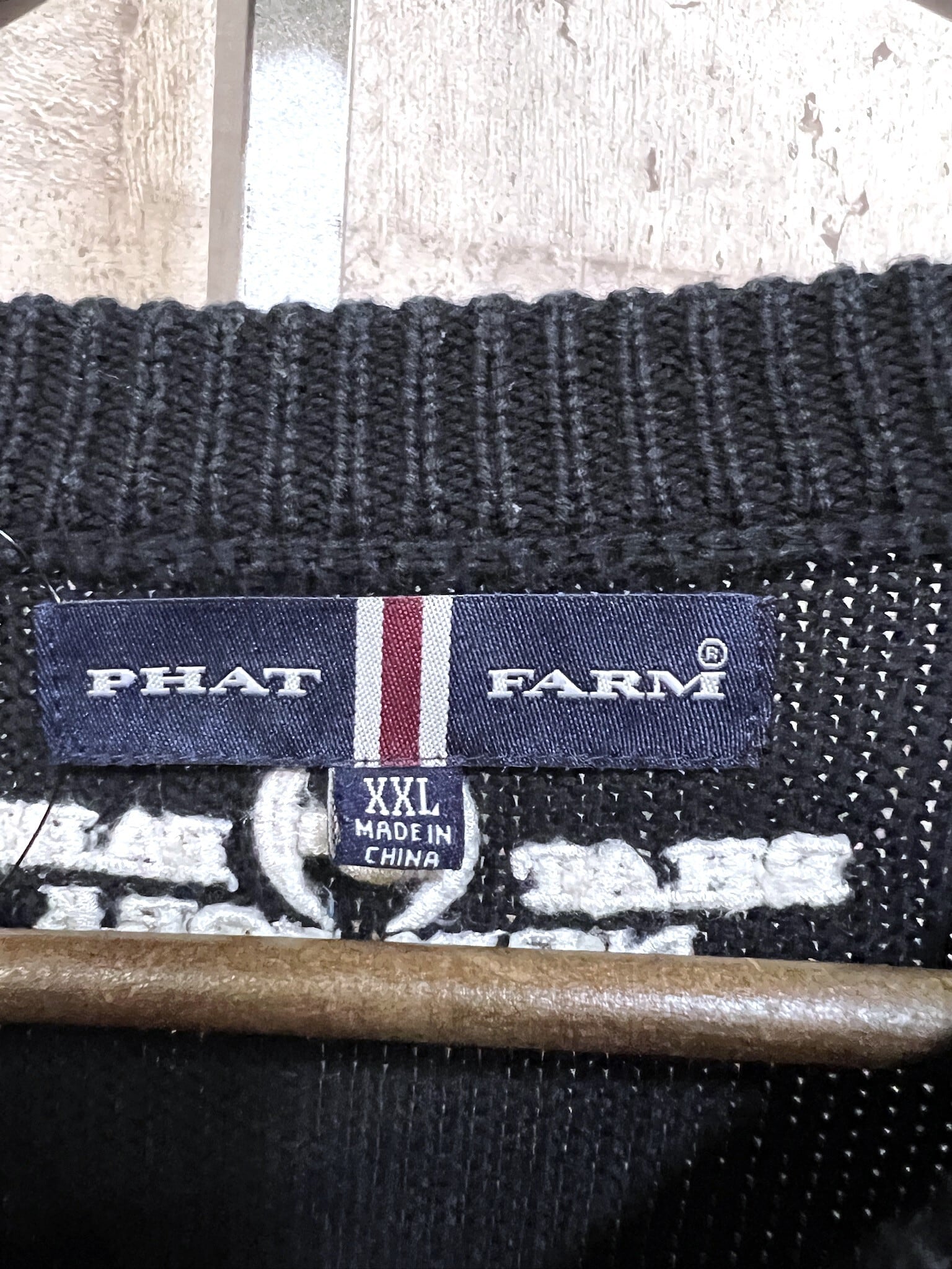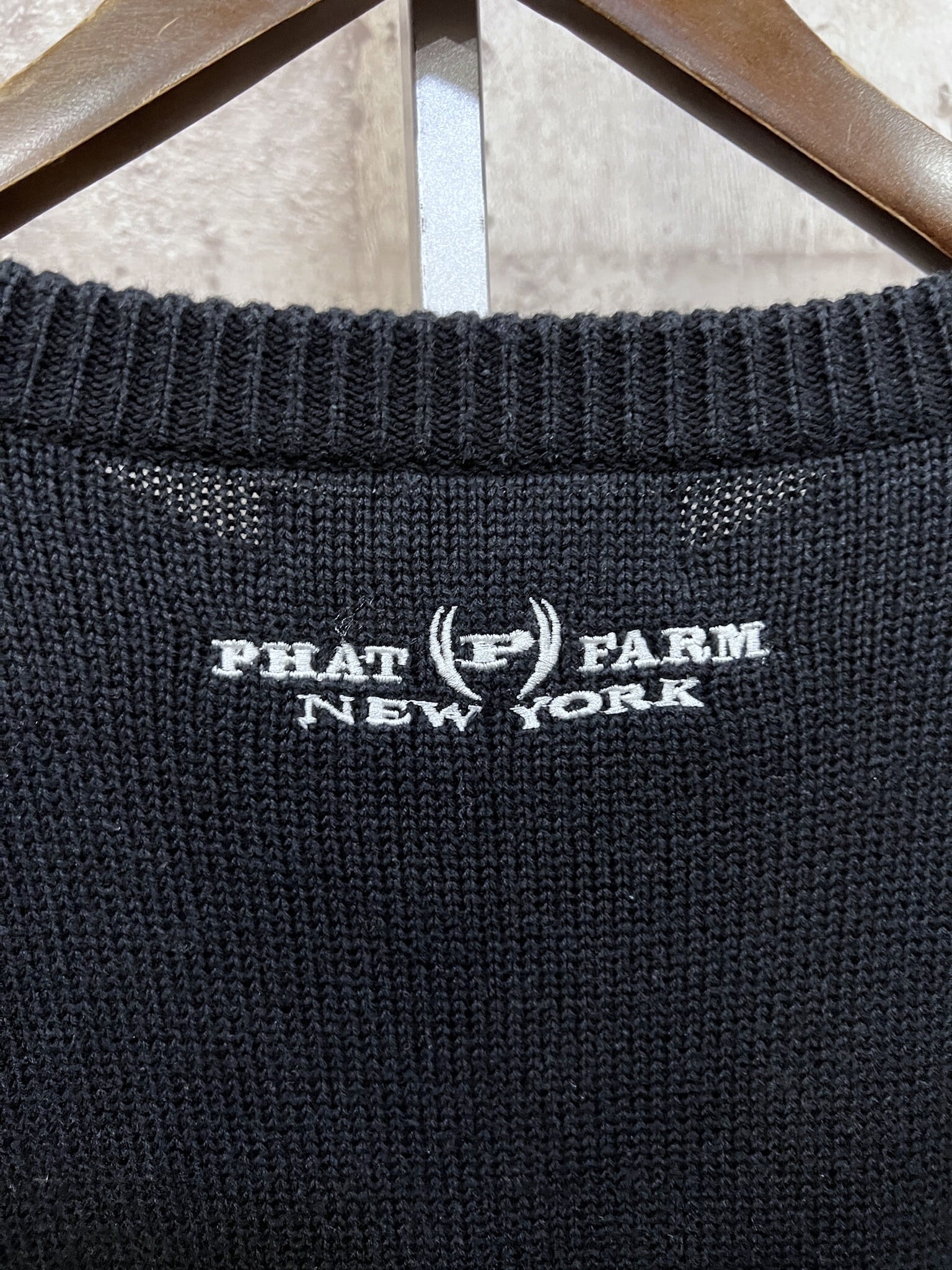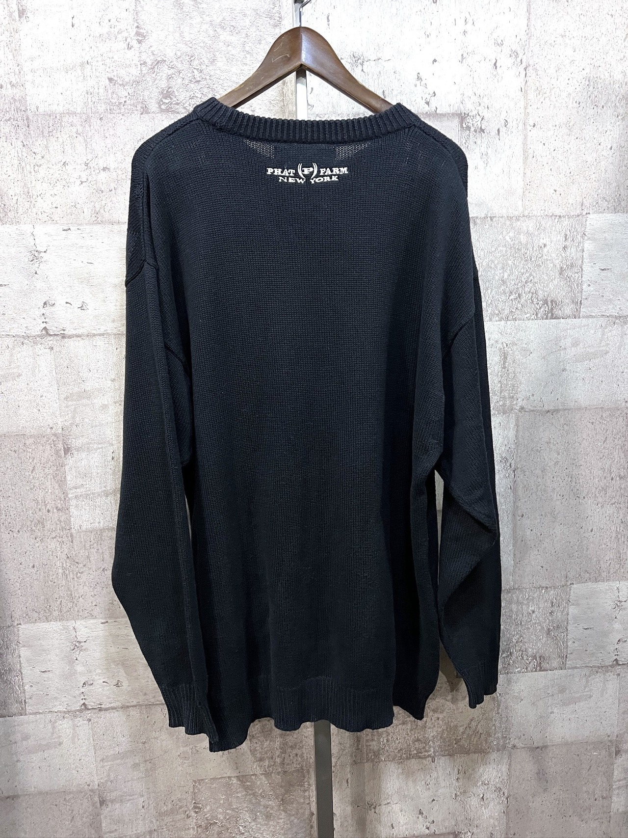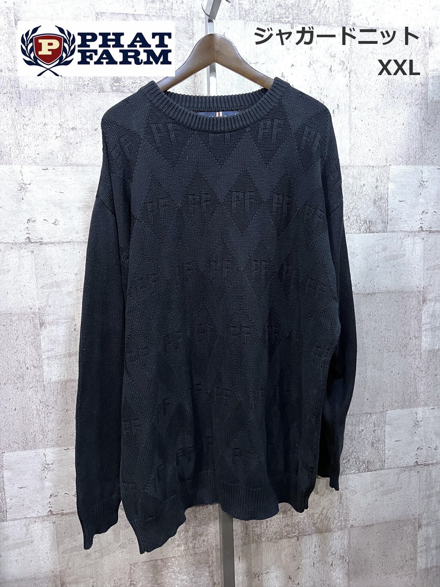 90'S-00'S PHAT FARM ジャガード アクリル X コットンニット 黒 XXL ファットファーム B系 ヒップホップ セーター
