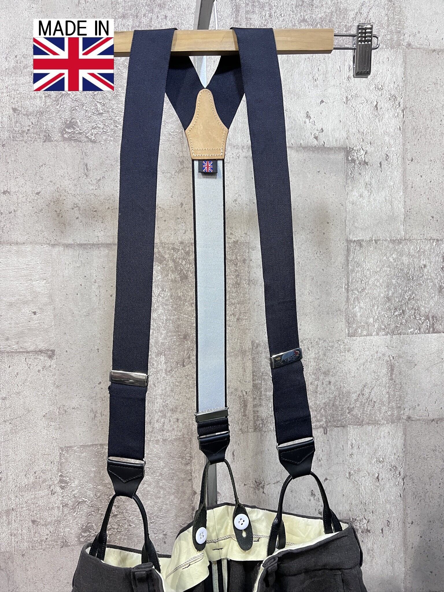 英国製 ボタン式 Y型 サスペンダー ブラック メンズ 黒 イングランド製