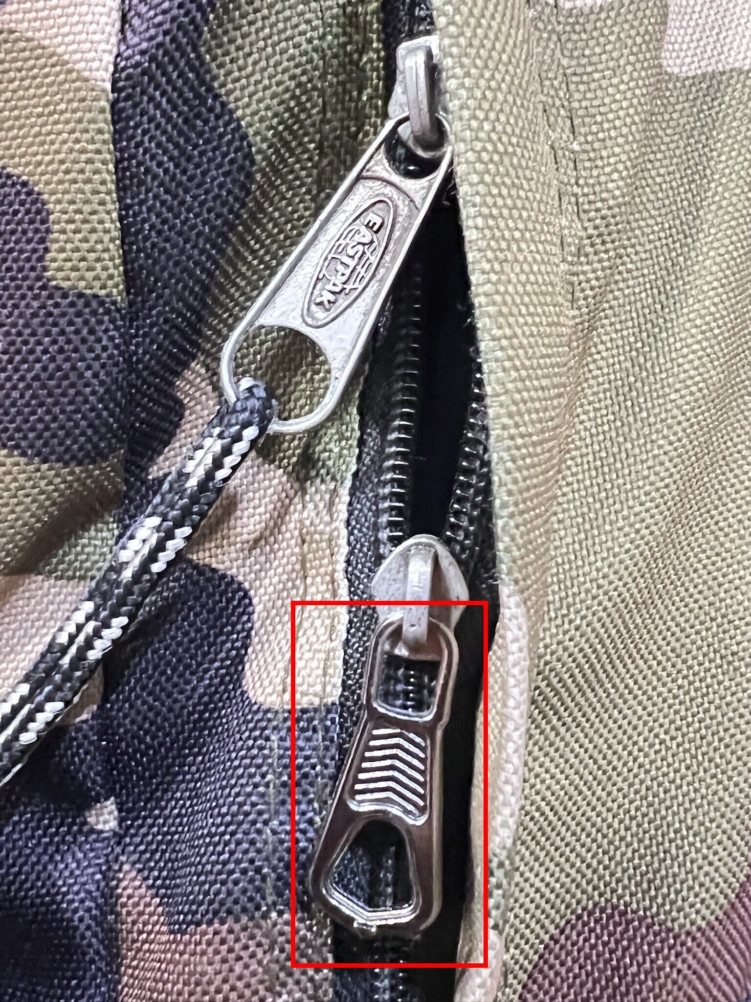 ・ジッパーのツマミがひとつが取れていたので適当なツマミを取り付けました。