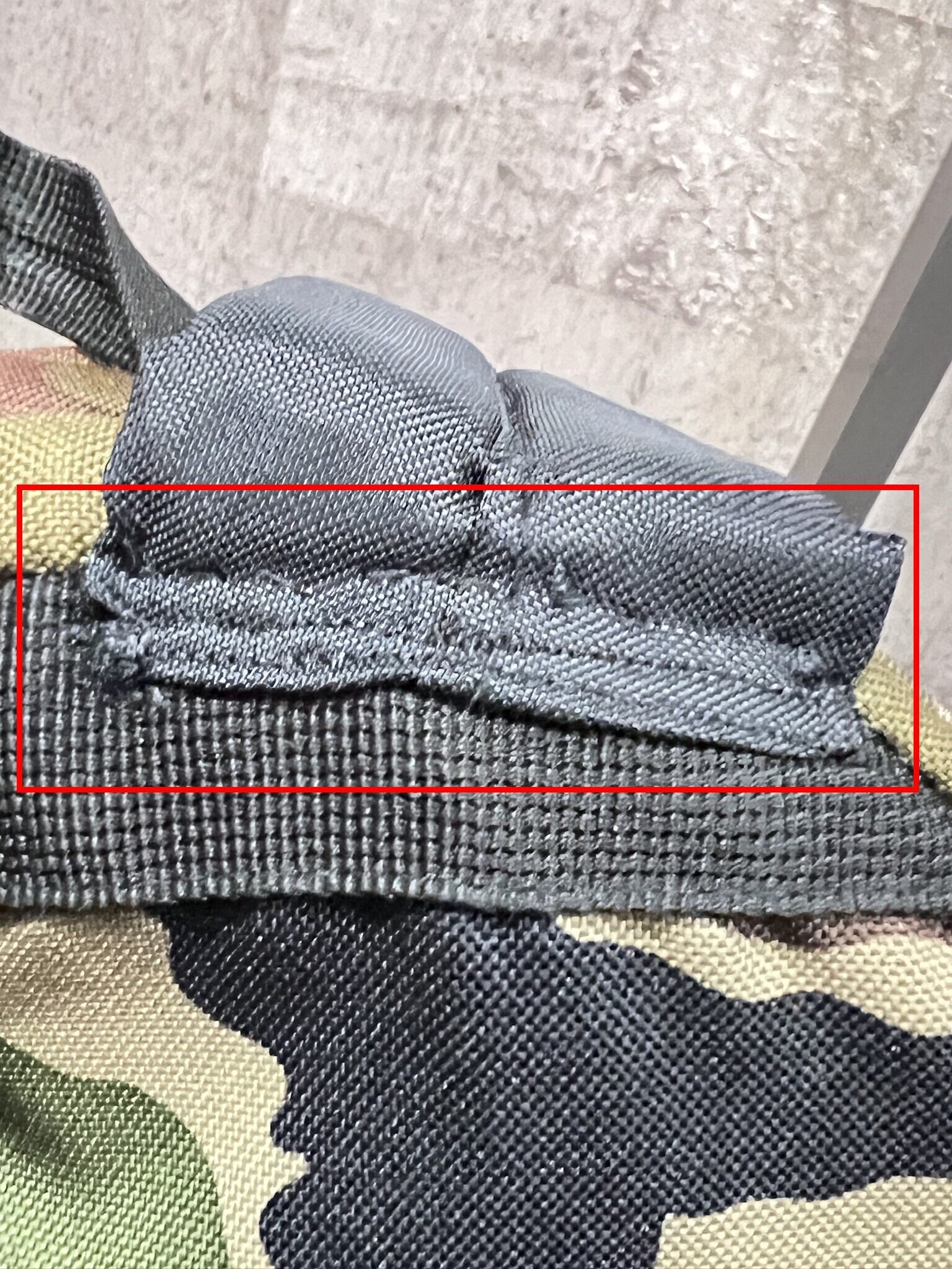 ・片側ストラップの上の付け根に裂けがあったので、2cmほど折り返してミシンで縫ってあります。