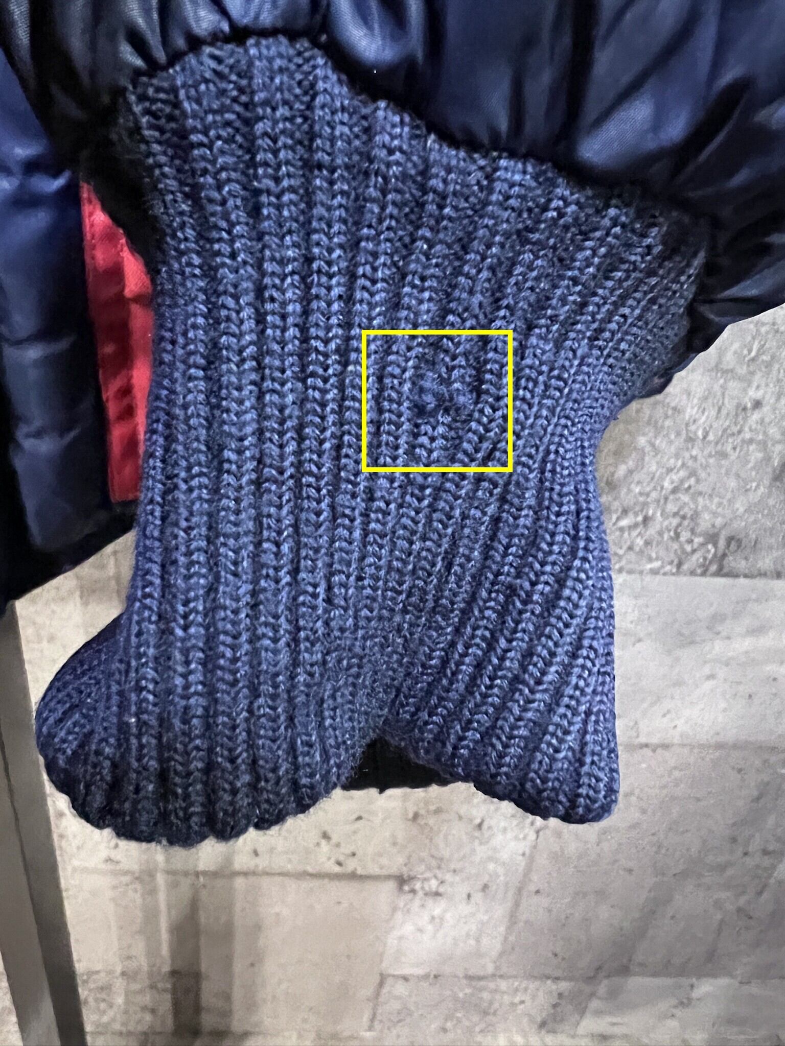 左袖リブに1ヶ所ピンホールがあったので縫って補修しました。