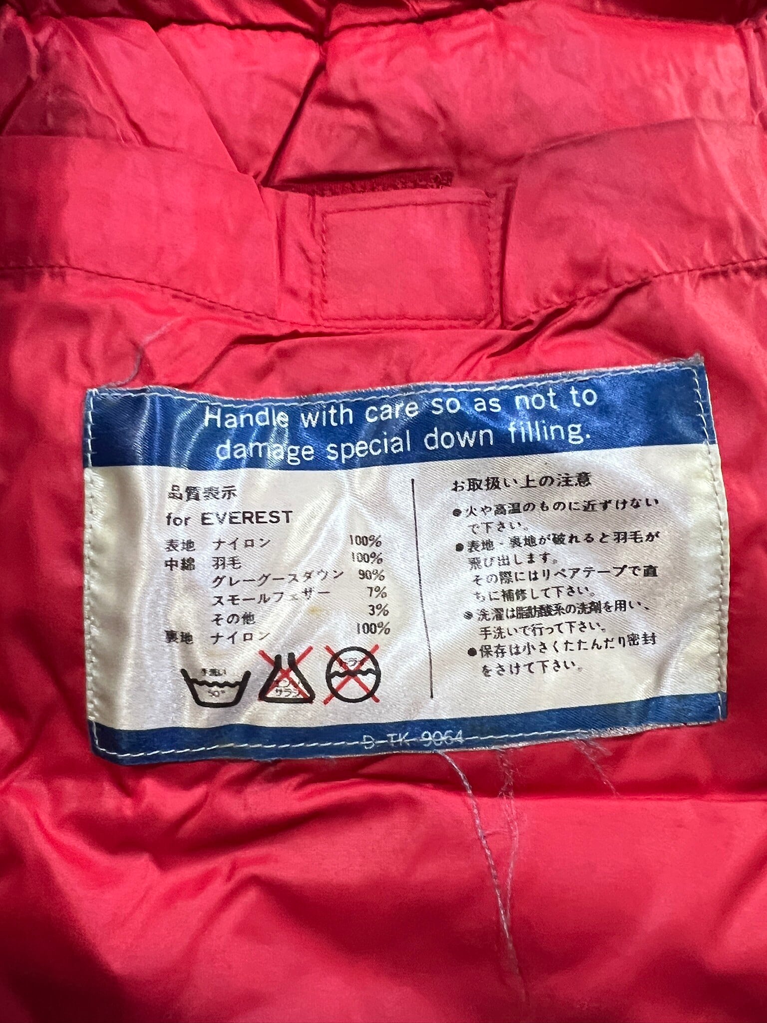 中綿:グレーグースダウン90%スモールフェザー7%その他3%
