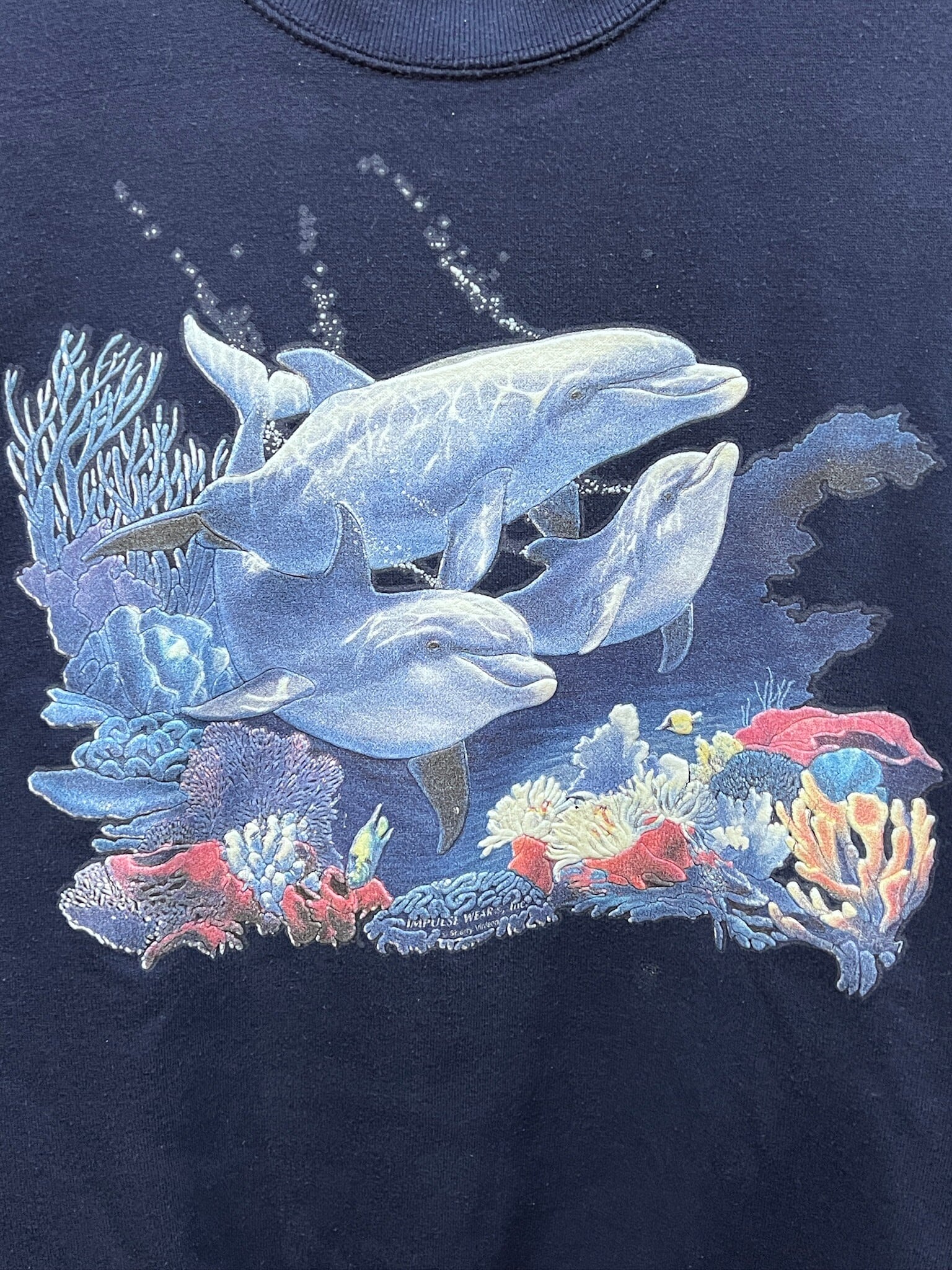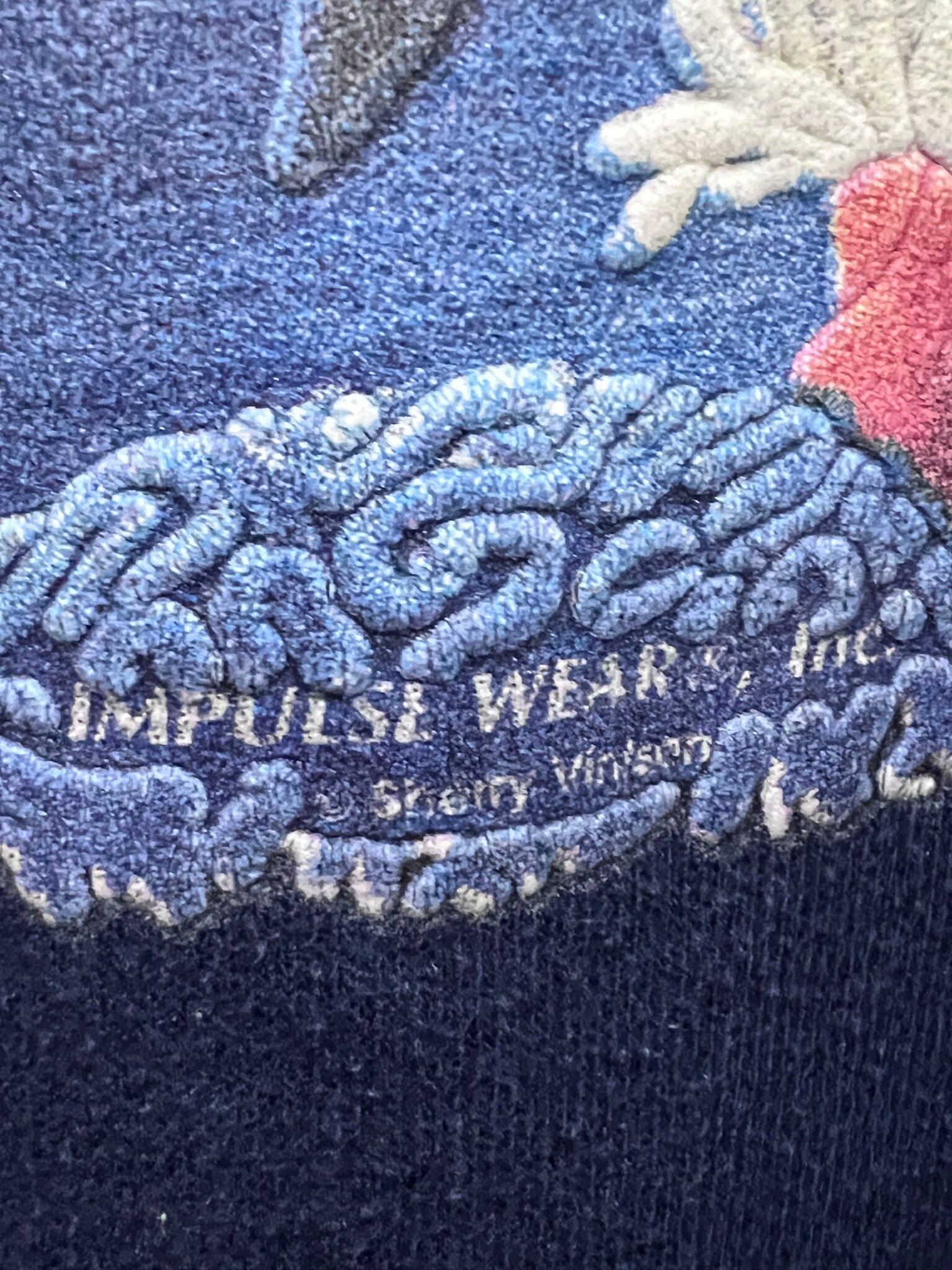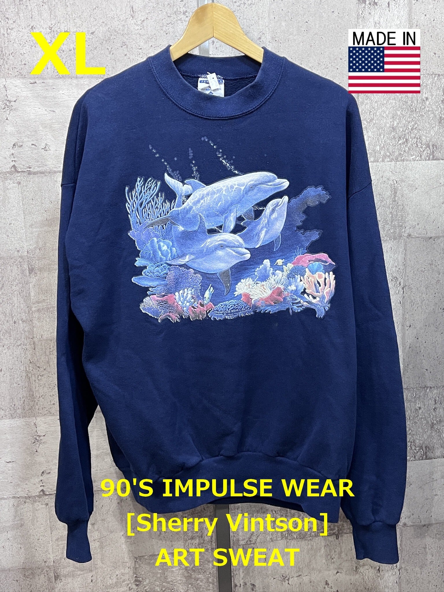 90'S USA製 JERZEES IMPULSE WEAR シェリーヴィンストン イルカ 発砲プリント スウェット XL アーティスト 米国製 アート