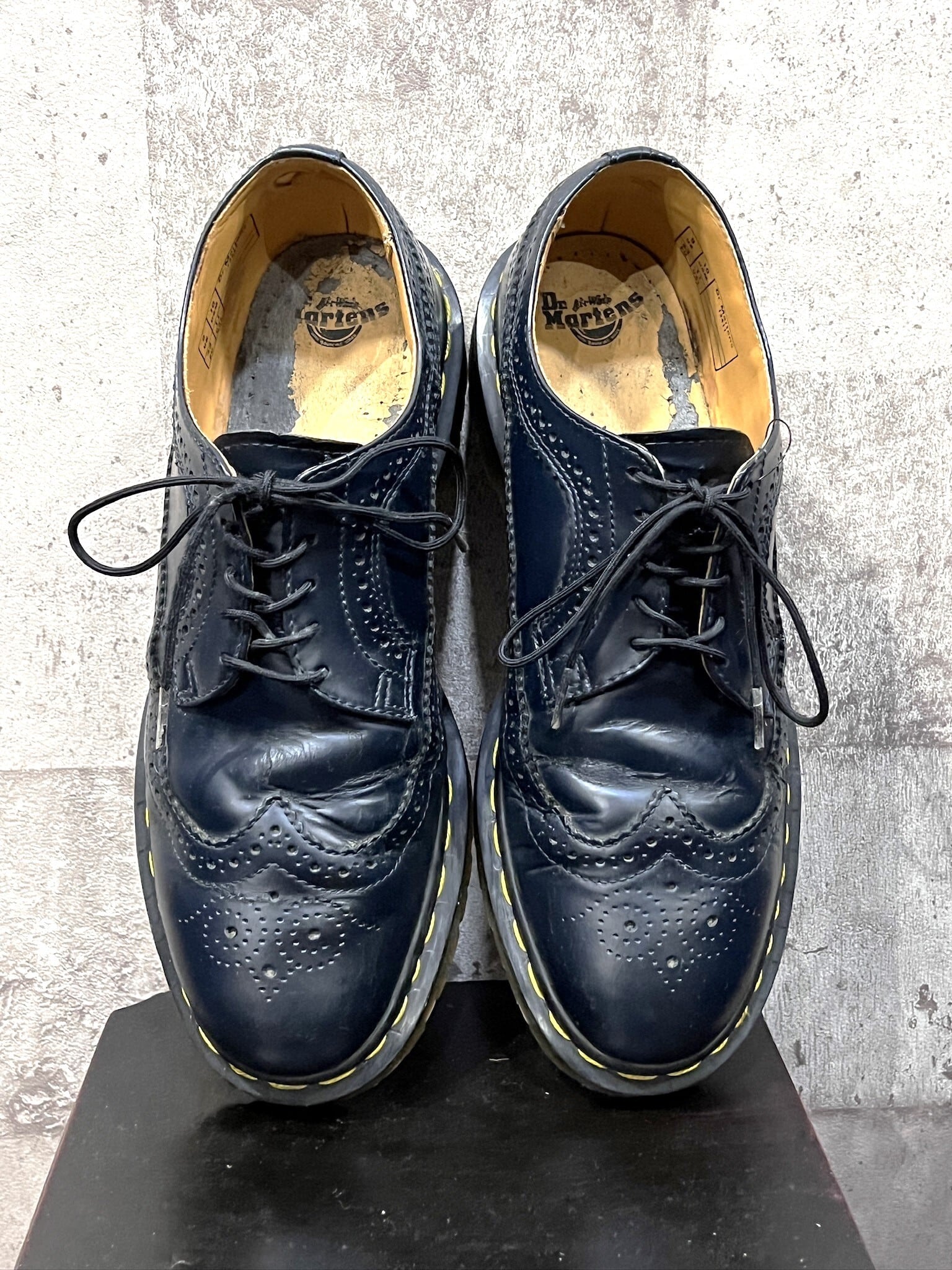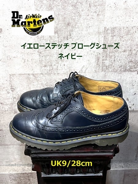 ドクターマーチン イエローステッチ ブローグシューズ ウイングチップシューズ UK9 ネイビー Dr.Martens