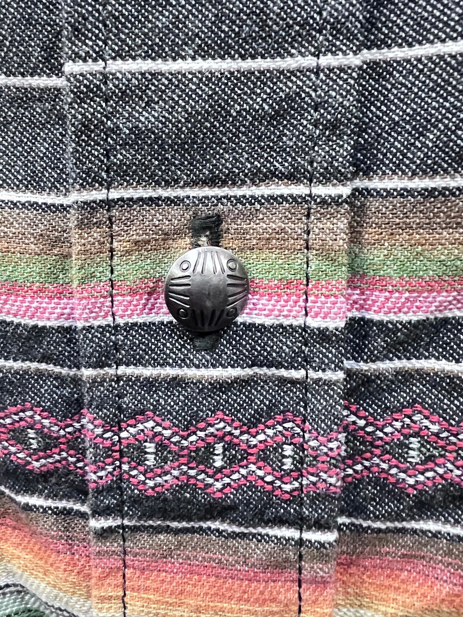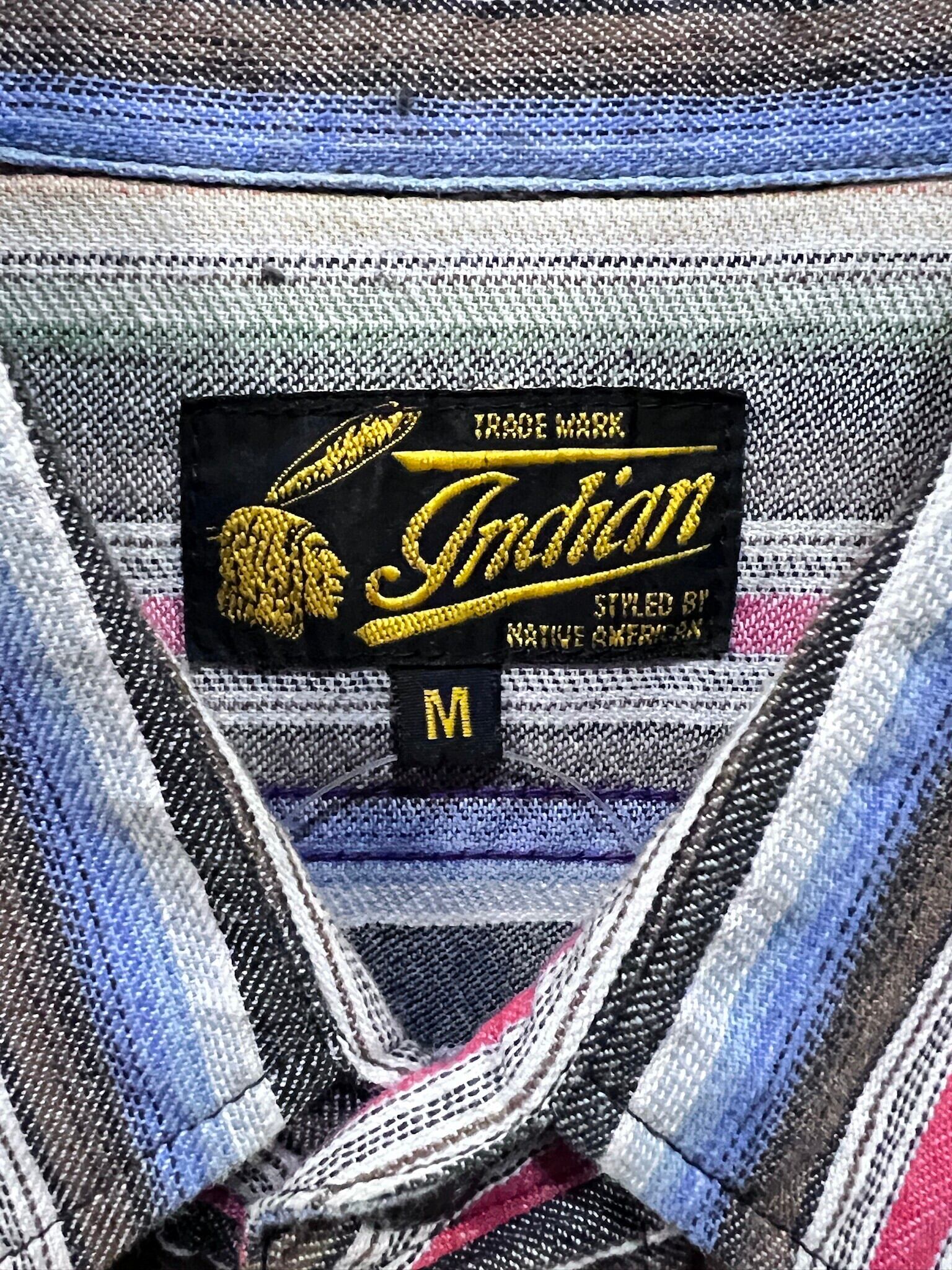 ブランド名どおりインディアンのスピリットを感じるネイティブボーダーにコンチョボタンのシャツ