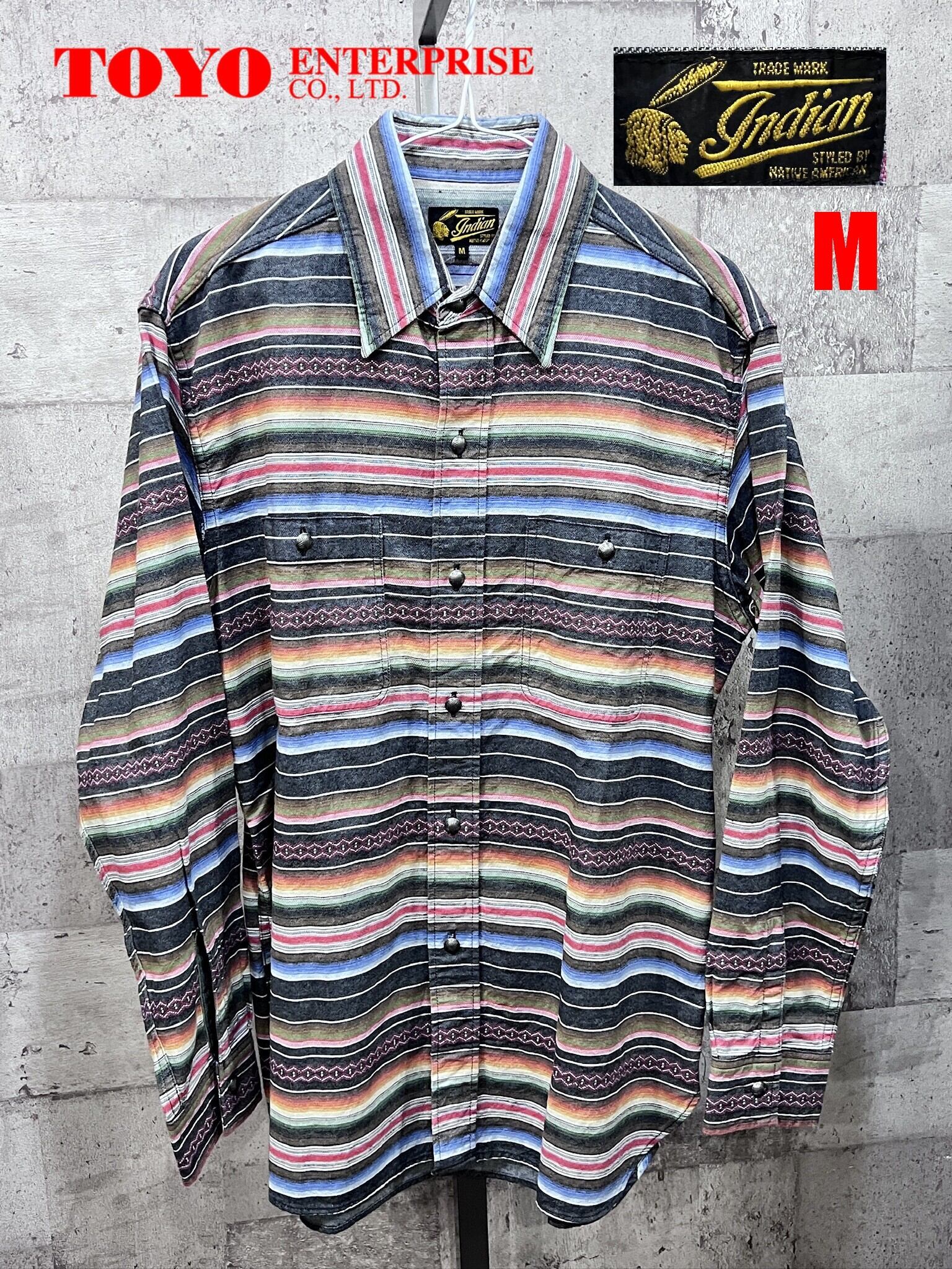 東洋エンタープライズ Indian Motocycle コンチョボタン ネイティブボーダー 長袖シャツ M インディアンモーターサイクル セラペ柄 IM2278