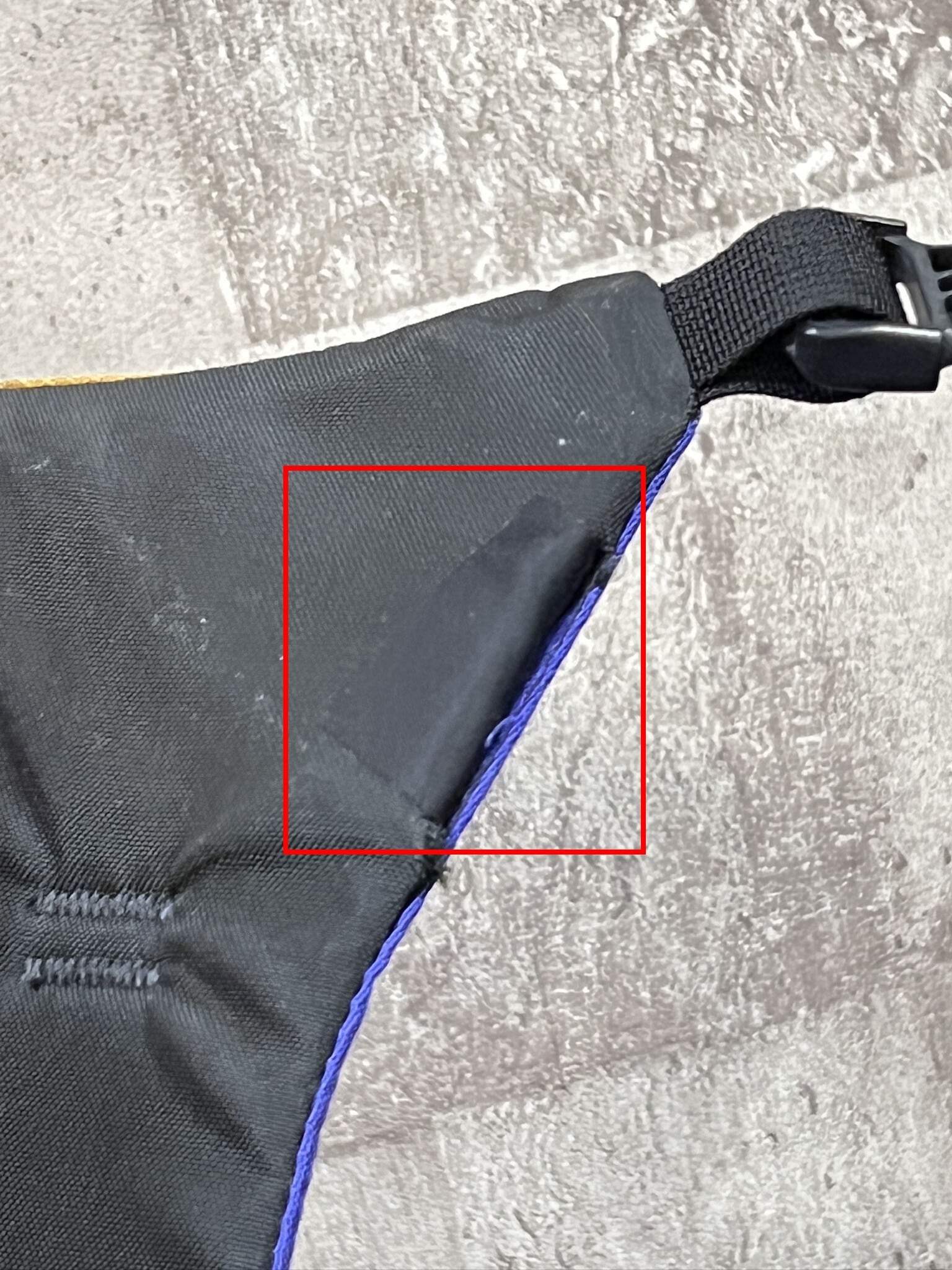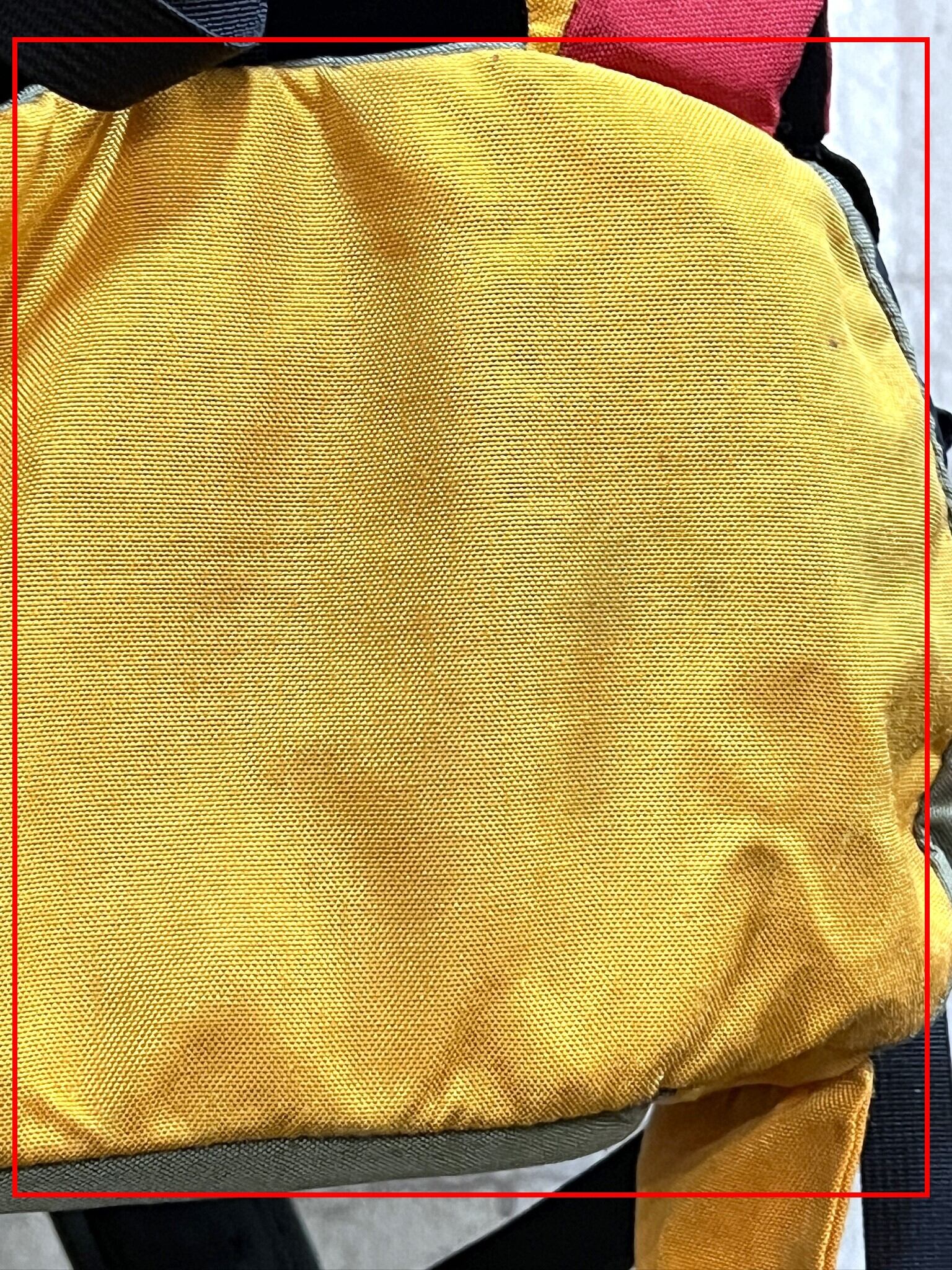 フロントパネルの裏側の生地に解れがあったので、補修シートを貼ってあります。