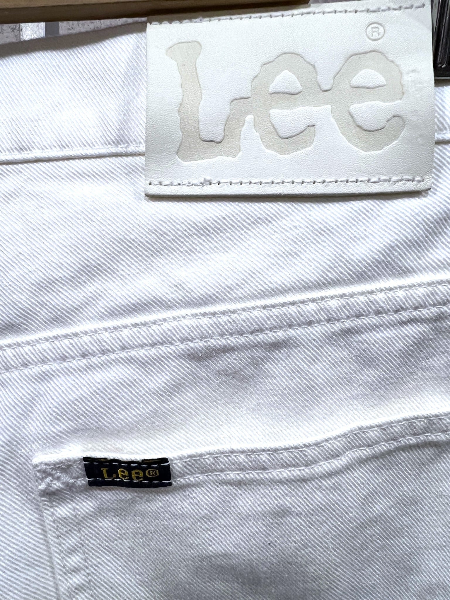美品 Lee ユニバーサルランゲージ別注 ワンタック テーパード ホワイトデニム ドレスジーンズ M メンズ リー スラックス パンツ