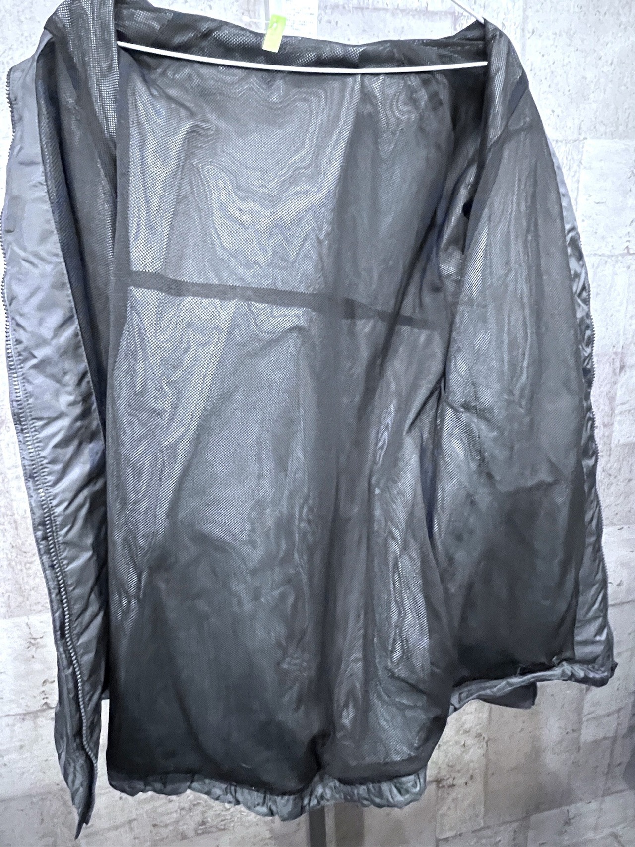 裏地はメッシュ、襟の中にフードが収納されています。