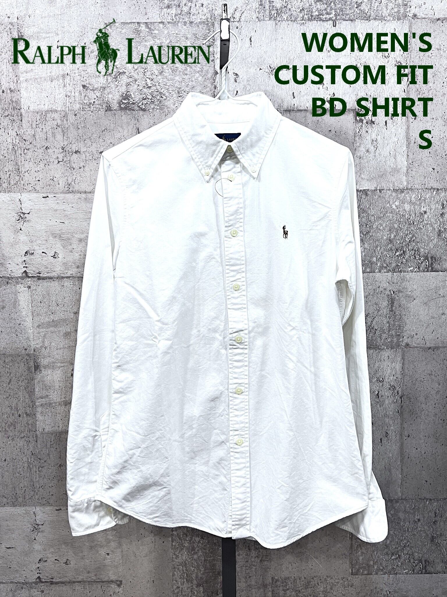 美品 レディース ラルフローレン 背ダーツ入り オックスフォード 長袖ボタンダウンシャツ S 白 ホワイト RALPHLAUREN
