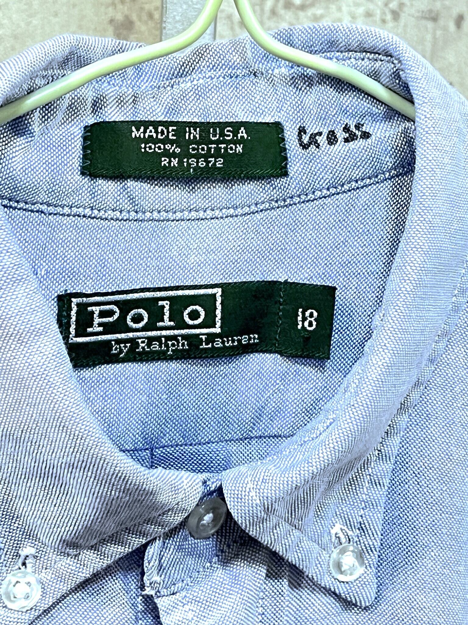USA製 80'S-90'S ポロラルフローレン 緑タグ オックスフォード 長袖 ボタンダウンシャツ ボーイズ18 POLO RALPHLAUREN