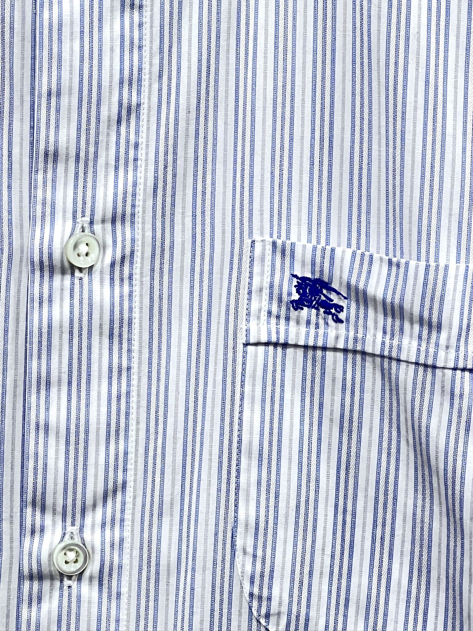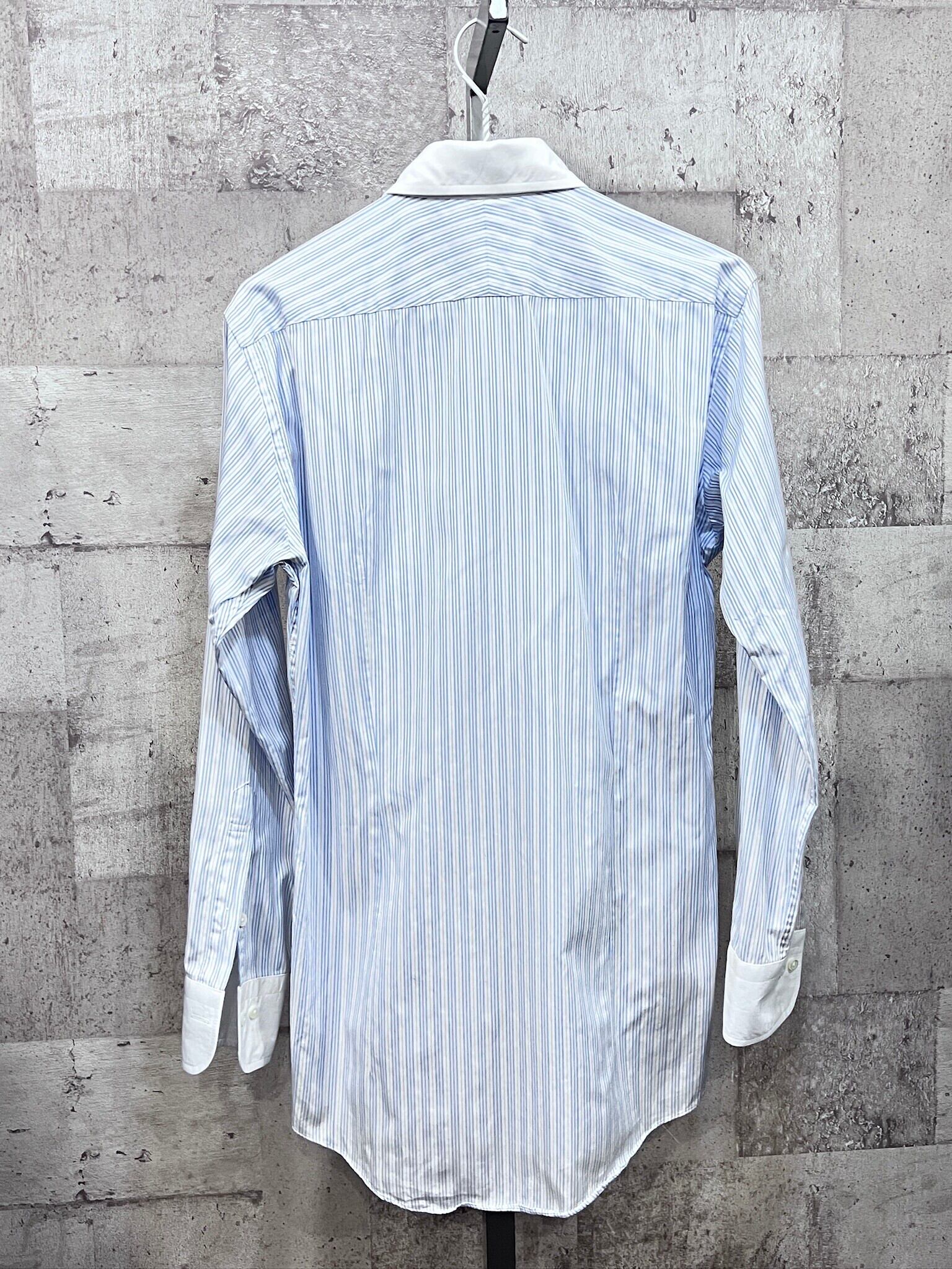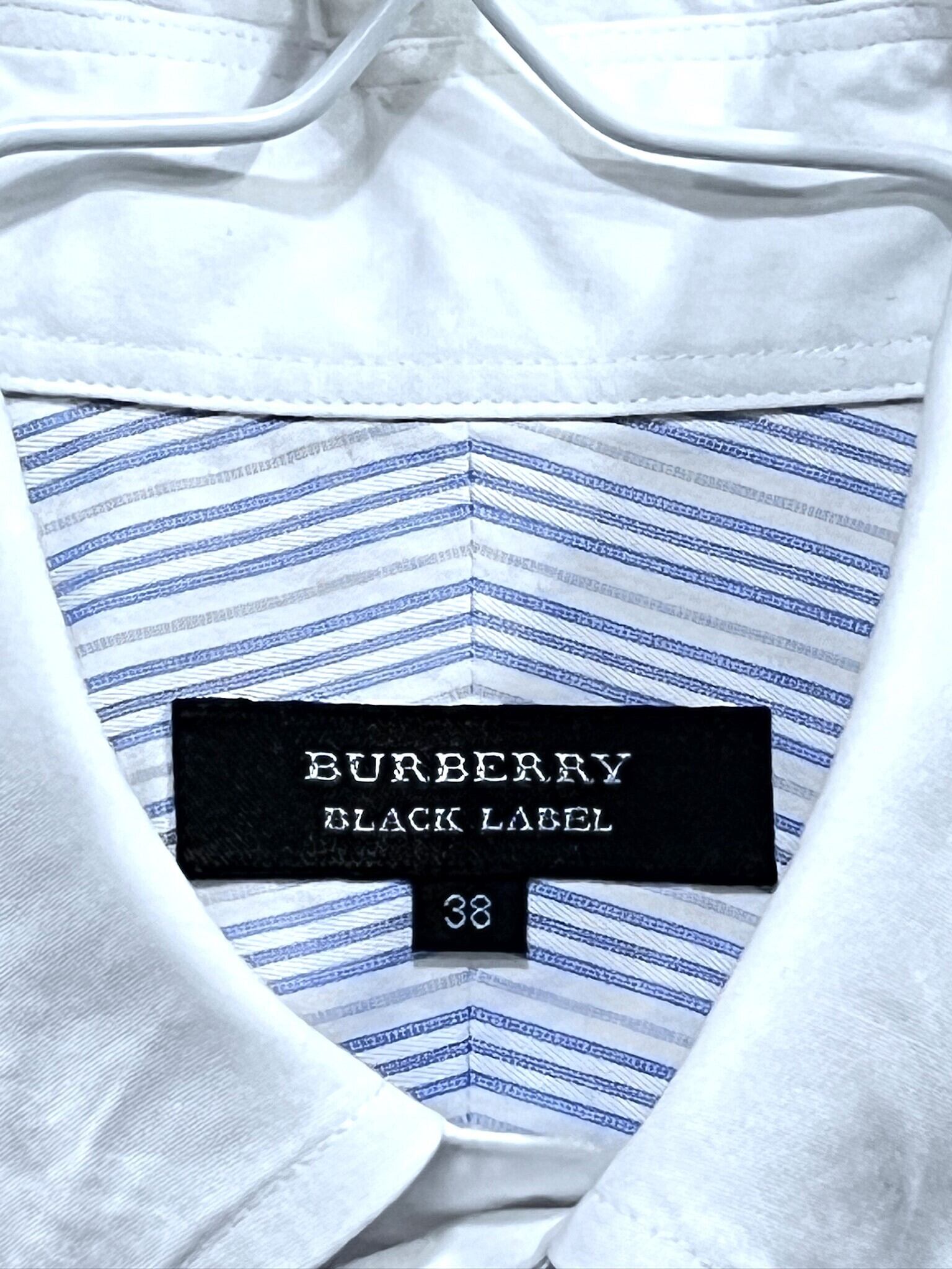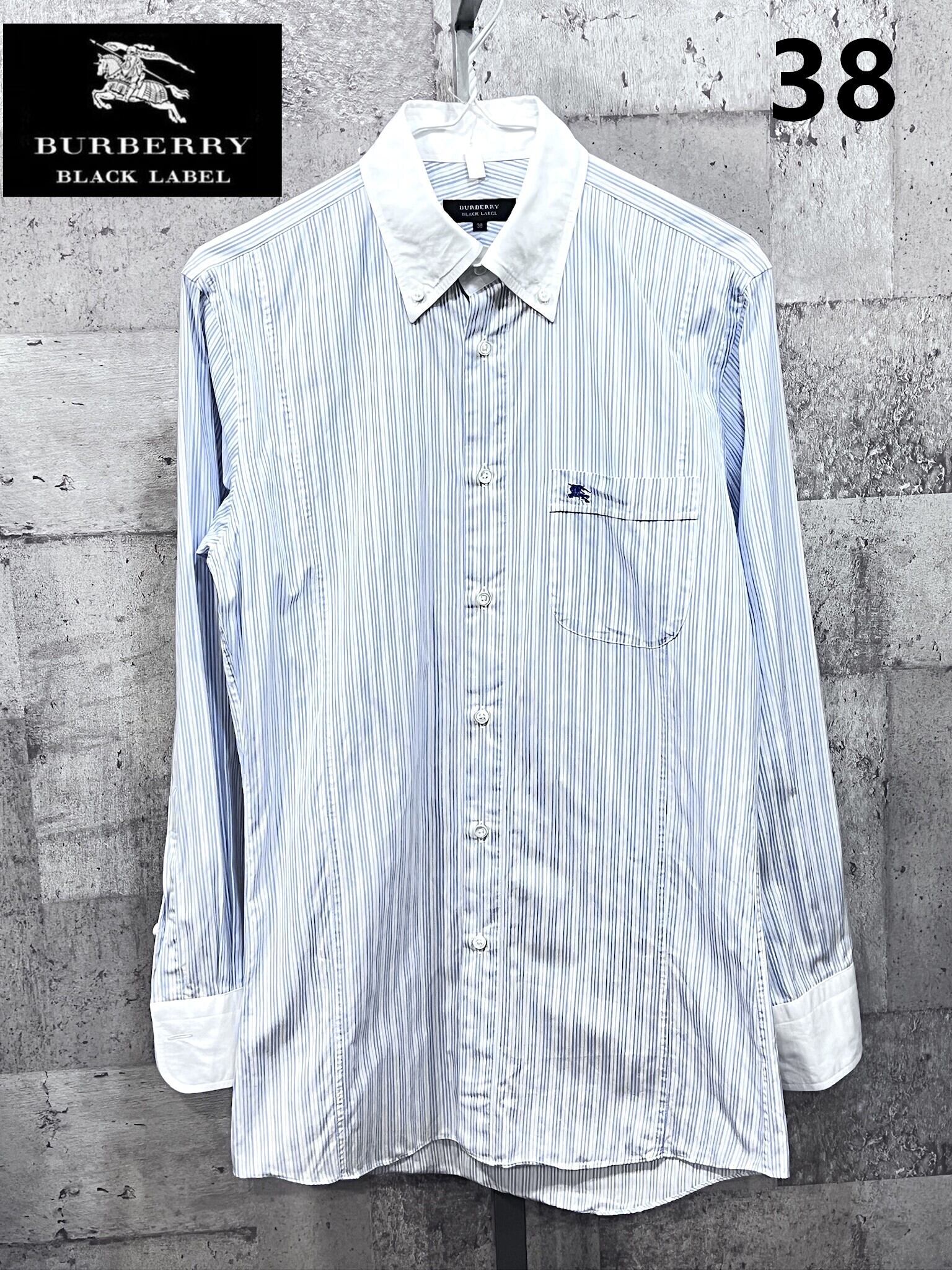 美品 バーバリーブラックレーベル ストライプ柄 長袖クレリックシャツ 38 BURBERRY BLACKLABEL