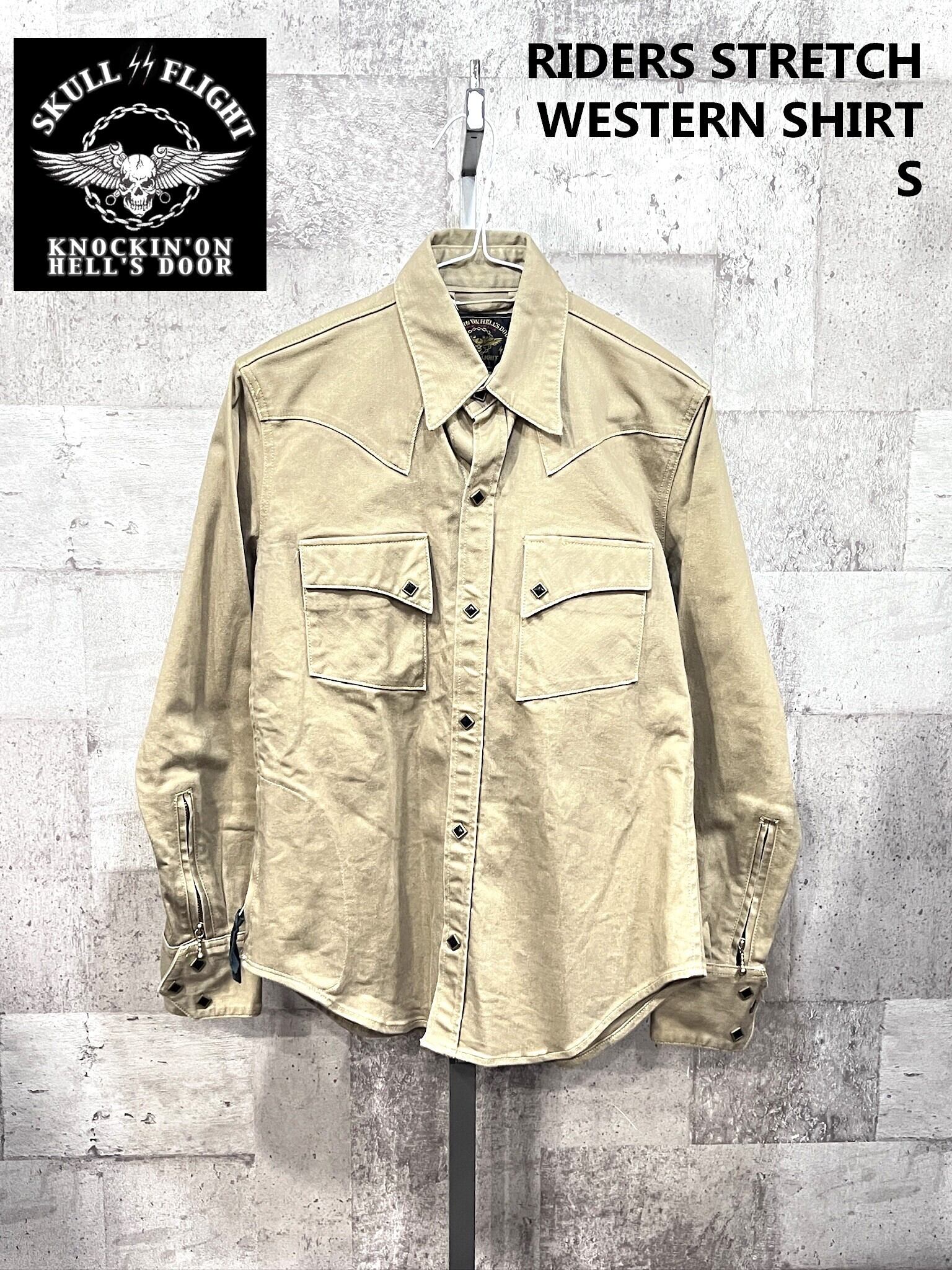 美品 SKULL FLIGHT ライダース ストレッチ ウエスタンシャツ S スカルフライト