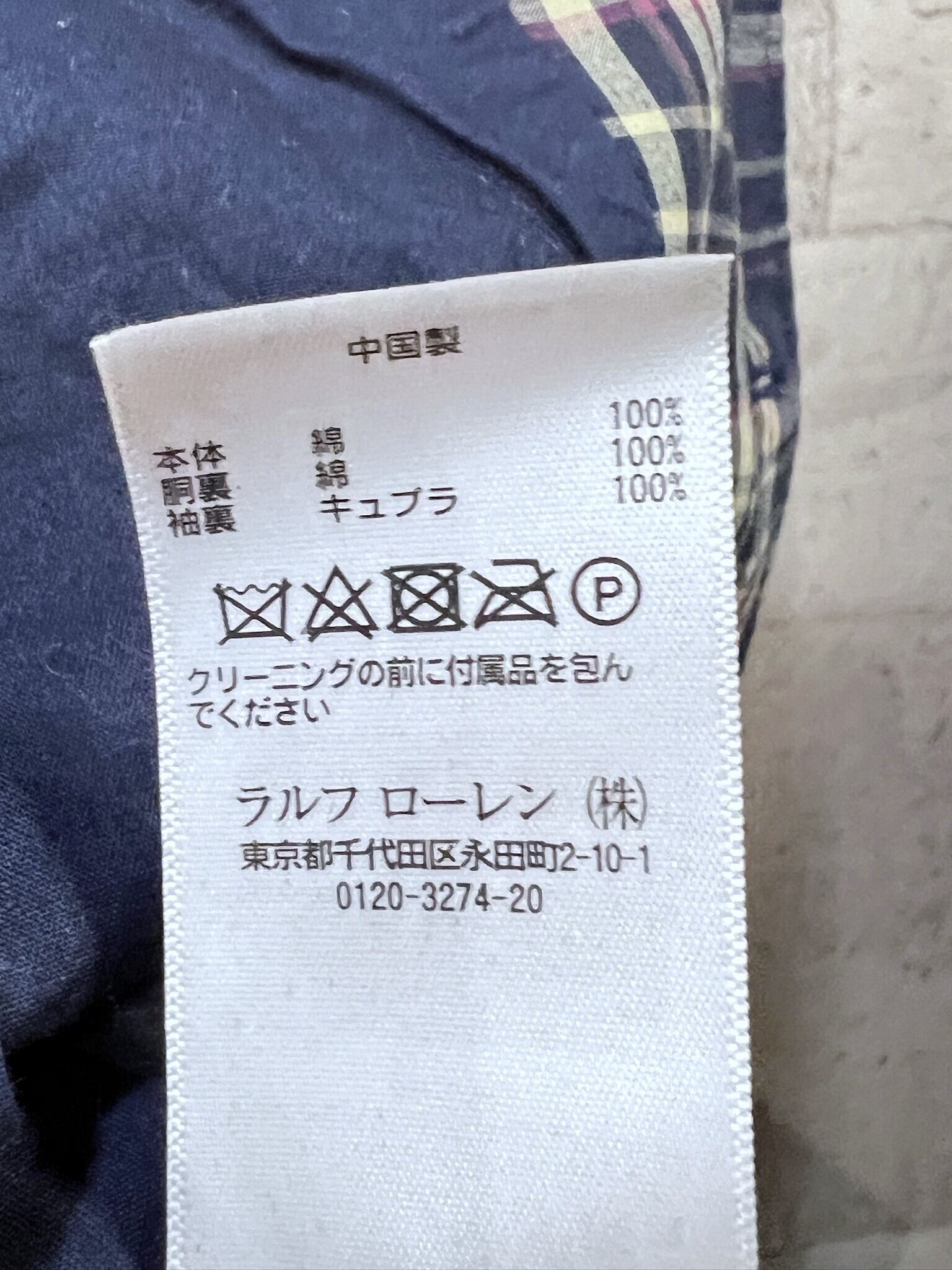 マドラスチェック柄のコットン生地で、ラルフのマドラスチェックシャツなどで使われるインド綿のような、軽く柔らかな質感です。