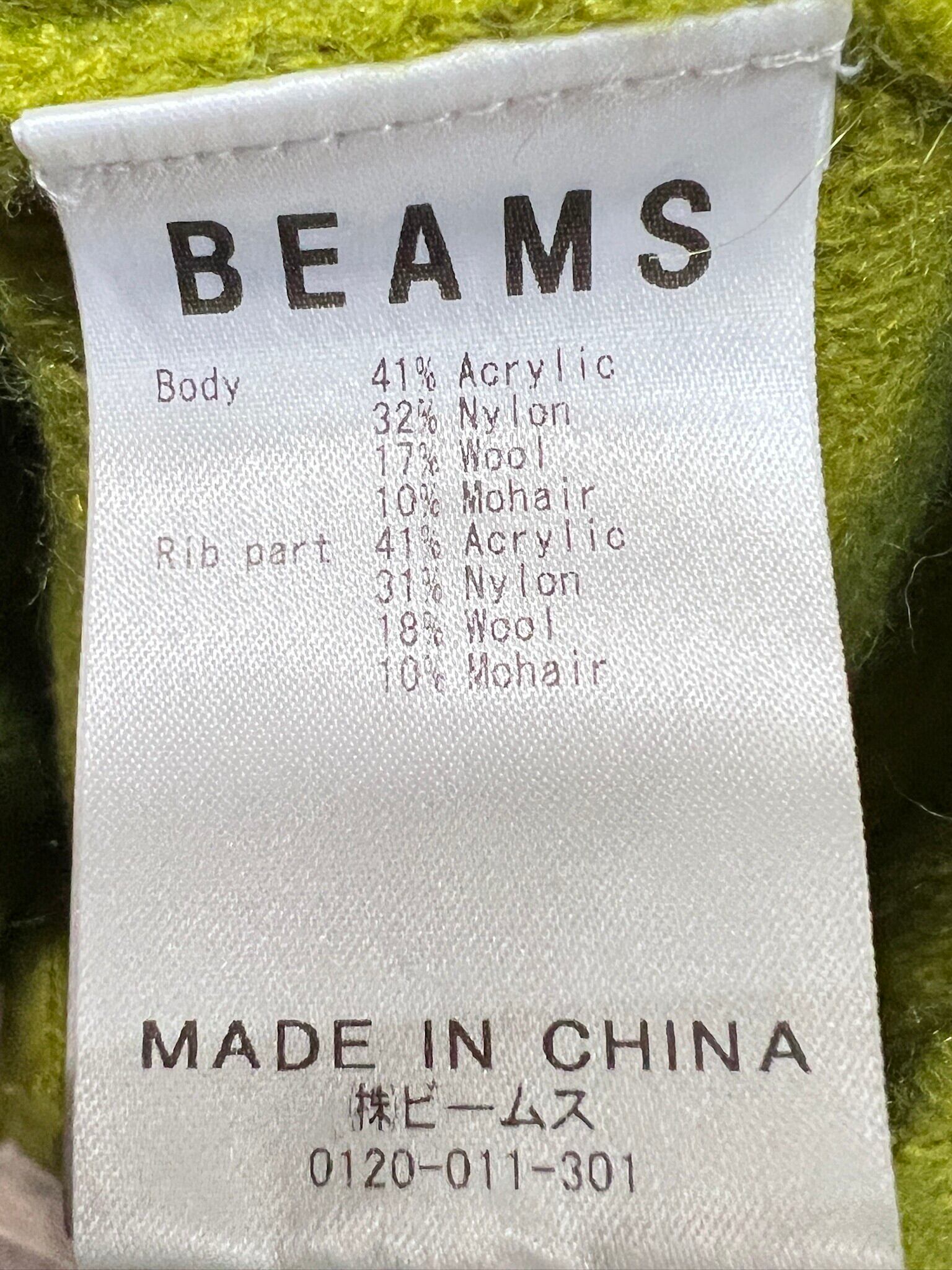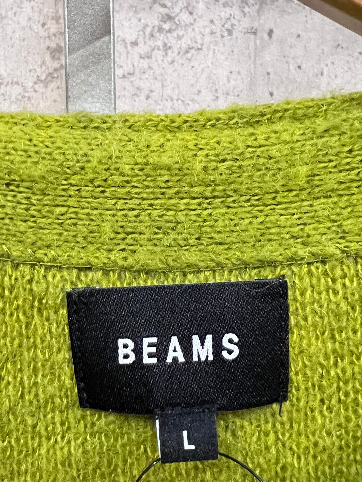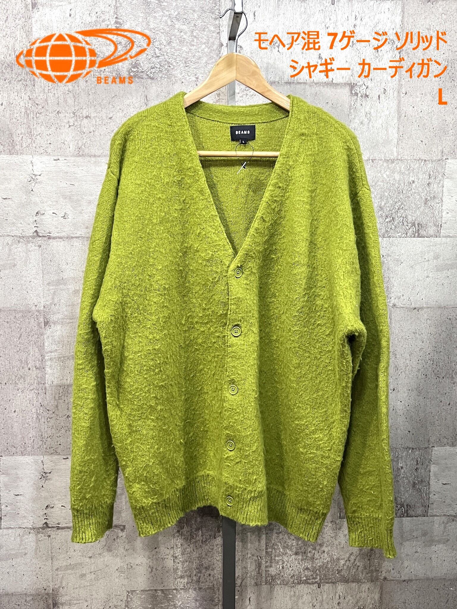 BEAMS モヘア混 7ゲージソリッドシャギー カーディガン L ビームス ライトグリーン グランジ