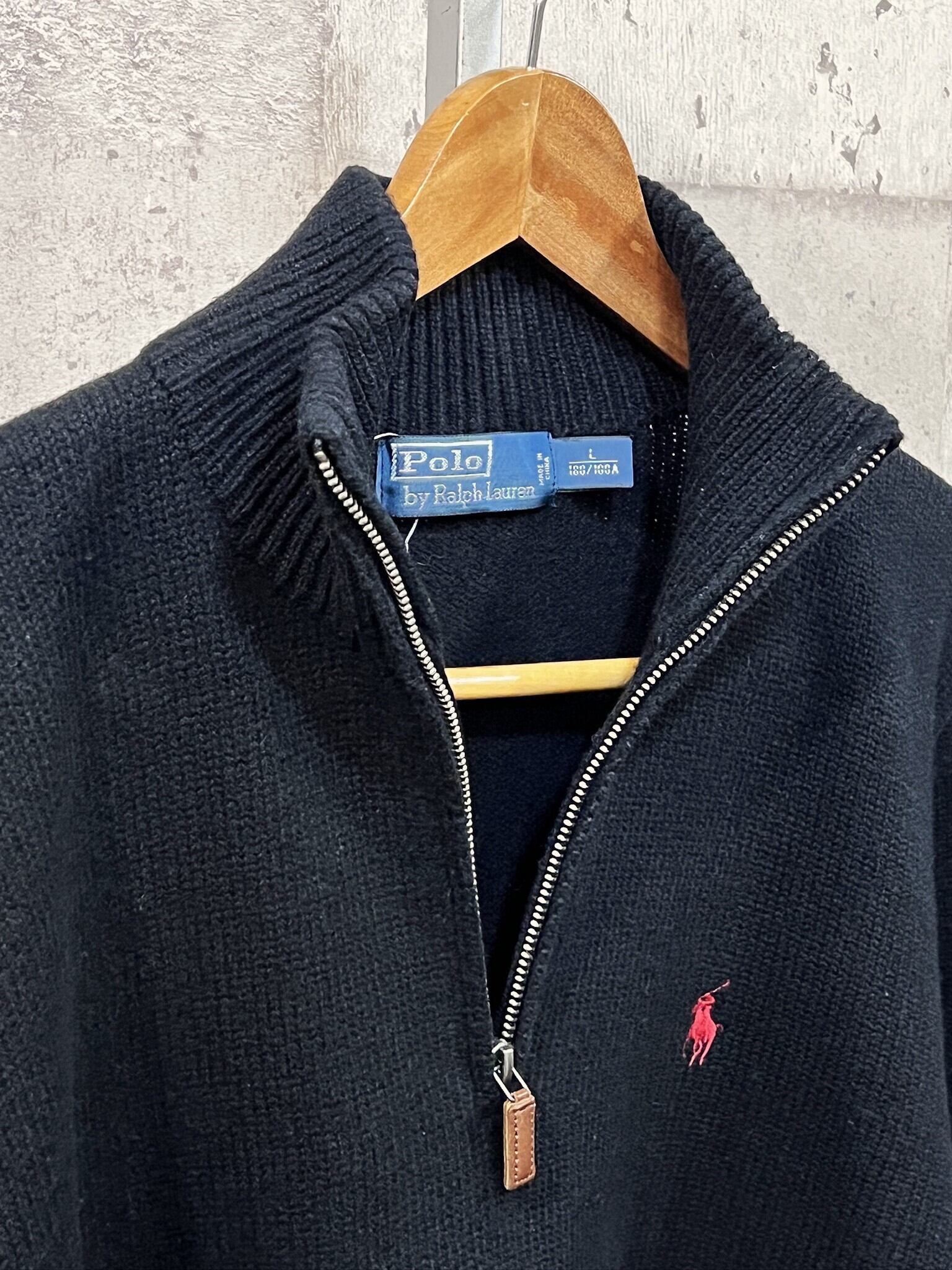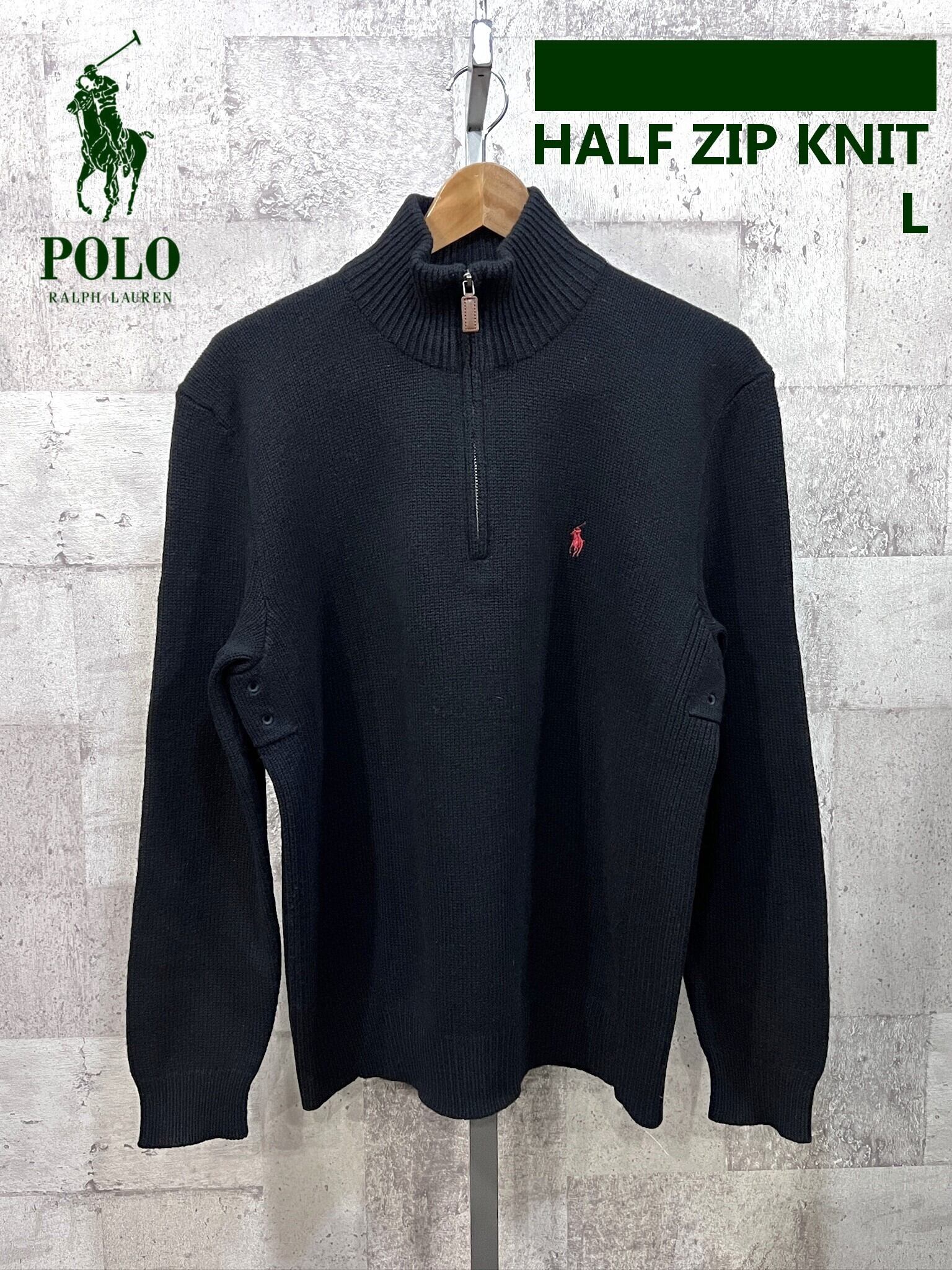 美品 ポロラルフローレン ウール ハーフジップ ニット セーター ブラック L メンズ POLO RALPHLAUREN