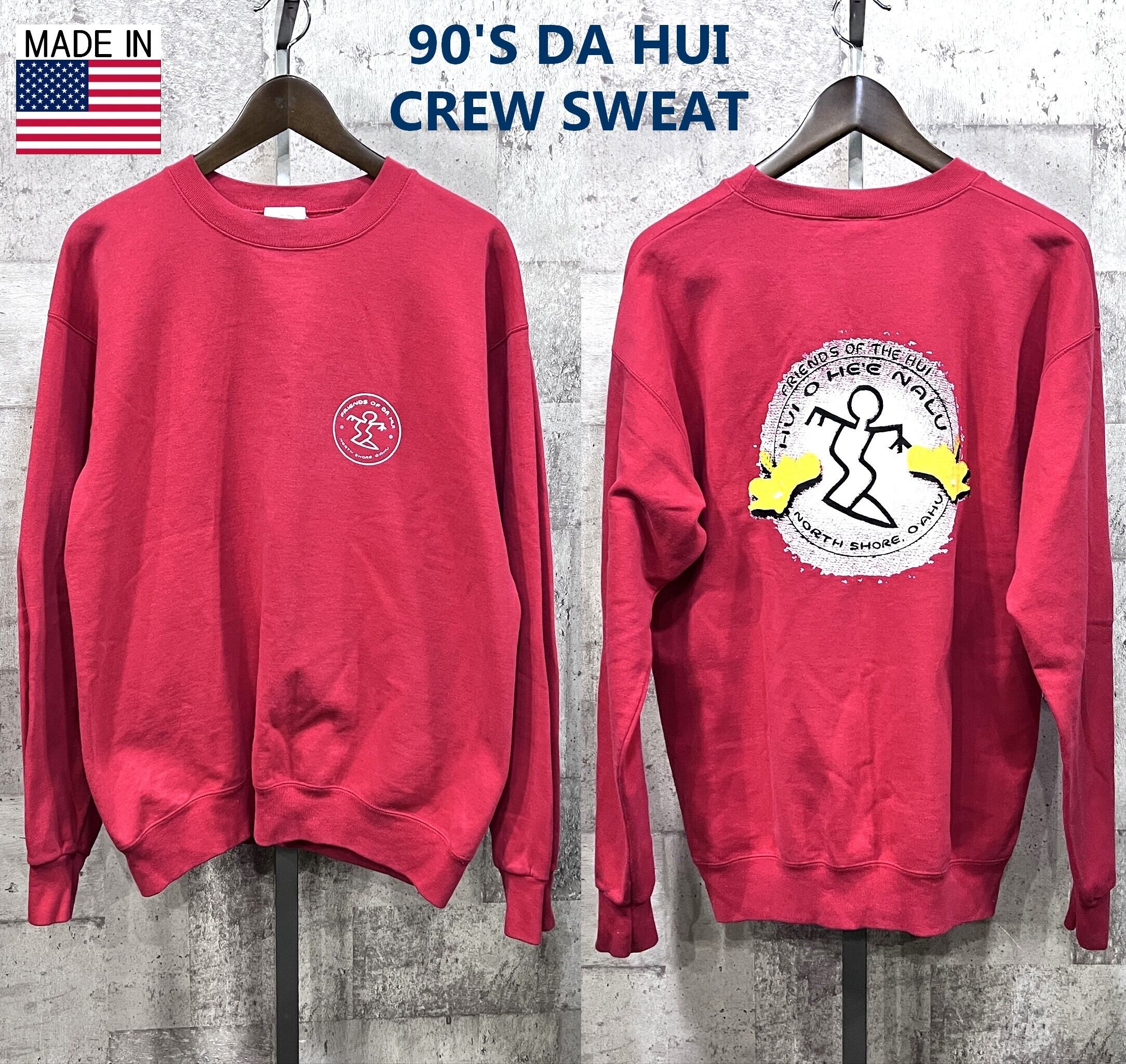 90'S USA製 DA HUI クルー スウェット L ダヒュイ トレーナー レッド 米国製 ダフイ サーフ